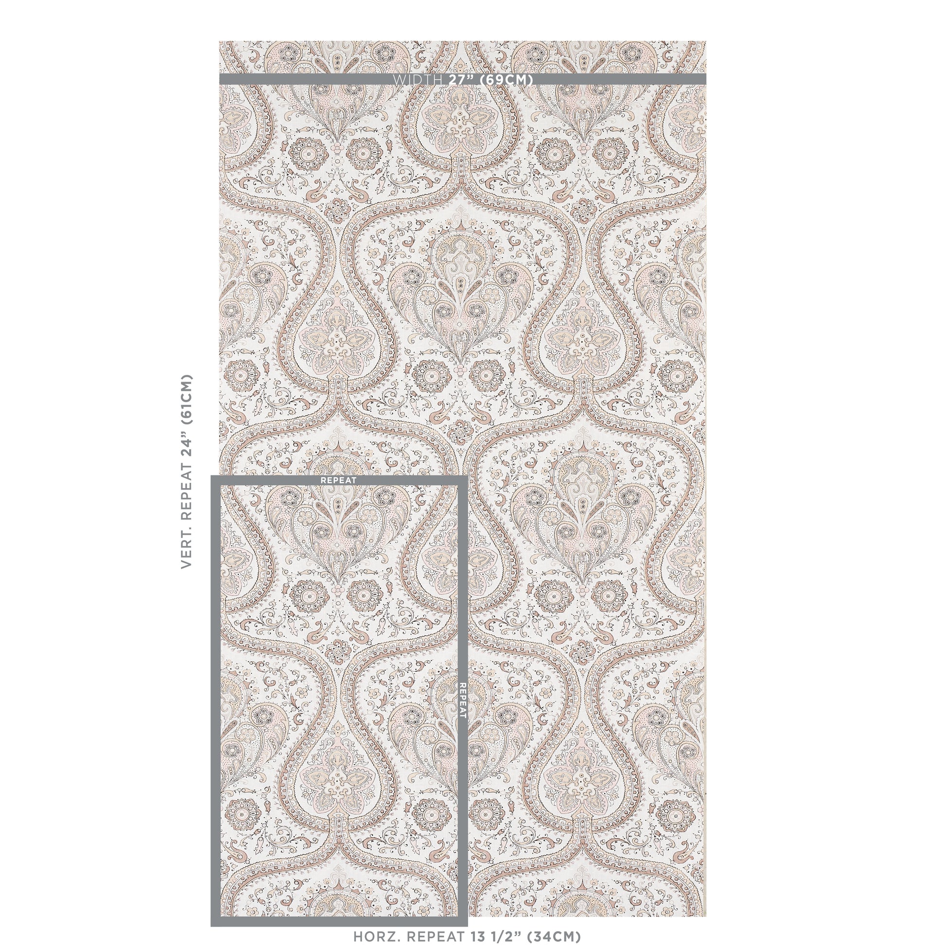 Use:A rich, sinuous pattern, this sand-colored Paisley Court features a strong, scrolling fretwork that outlines a series of intricate paisley-and-floral designs. Printed on fibrous paper, the large-scale wallpaper brings an added textural interest to all manner of interiors. Part of our East Meets West collection. Also available as a fabric.