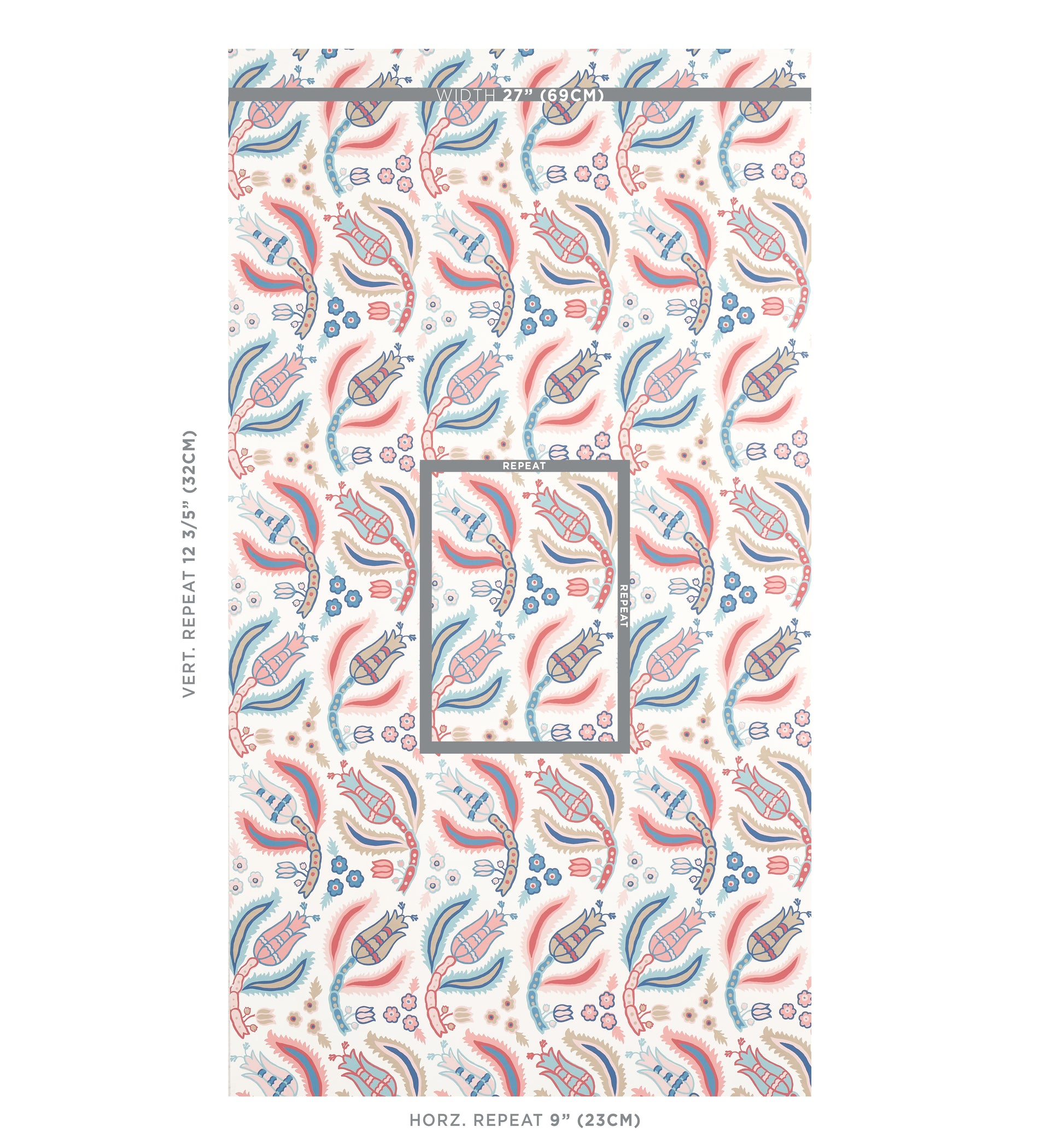 Repeat:VERT. 12 3/5" (32CM) HORIZ. 9" (23CM) inches