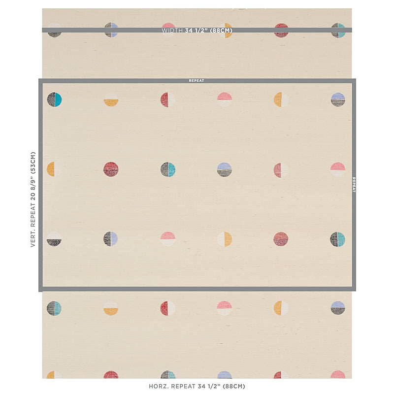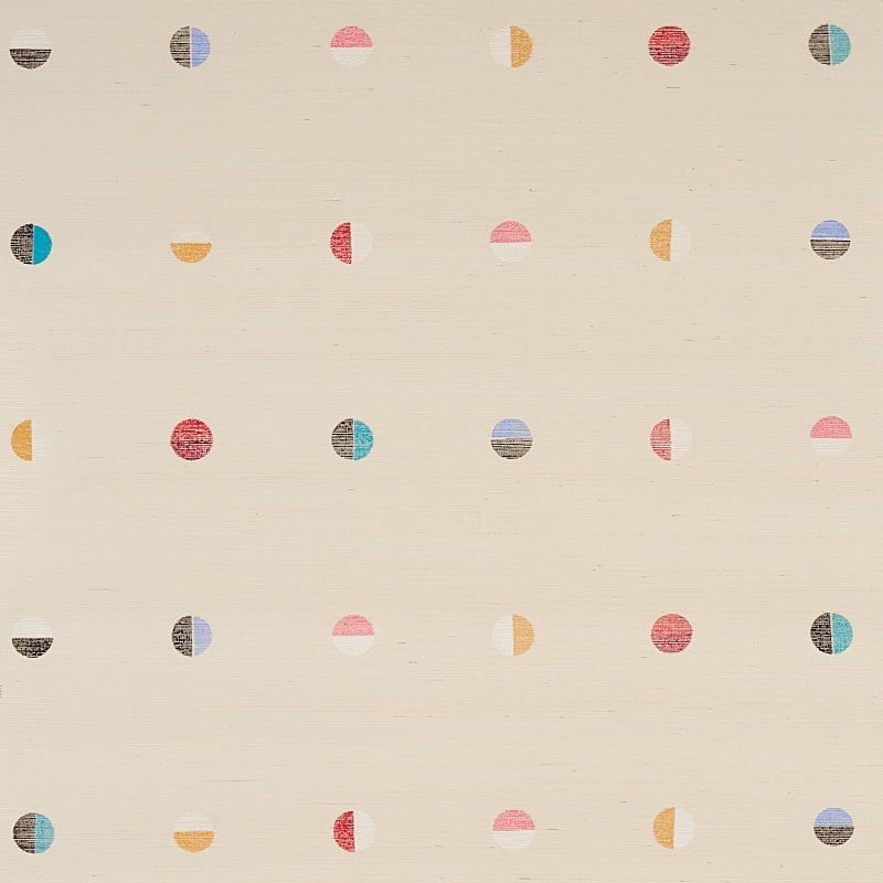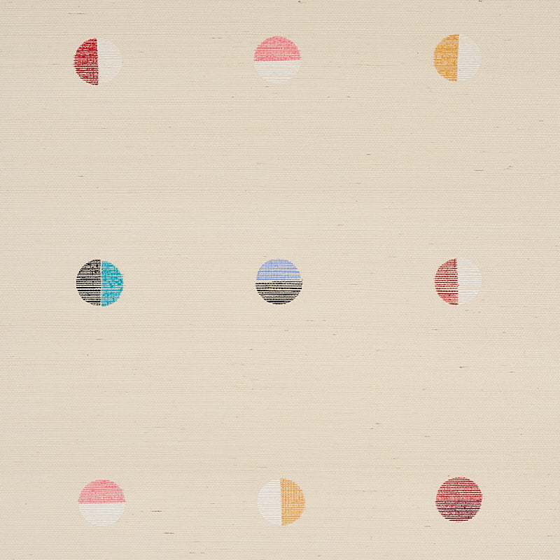 Use:Joshua Tree Hand Printed Sisal wallpaper in multi-on-ivory was designed by Caroline Z Hurley in her Brooklyn studio. Screen printed by hand on a textural ground, the slightly skewed moons capture the spirit of handcrafted goods.