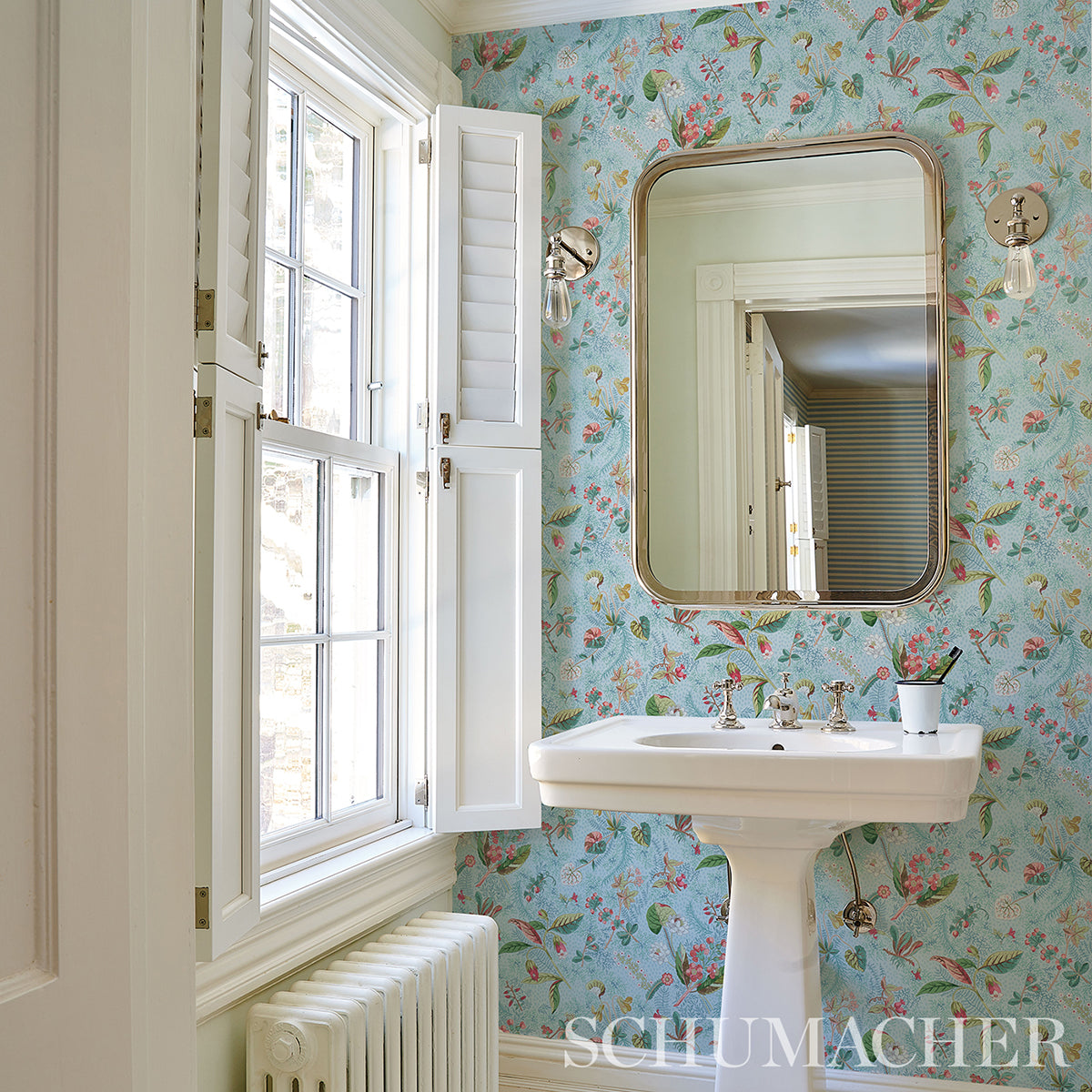 Use:Blackwell Linen's exquisitely detailed botanical forms stand out against a background of faint silhouettes of seaweed, coral, ferns and foliage. Based on a late 19th-century original, this sky wallpaper has an unusual fullness and depth. Also available as a fabric.