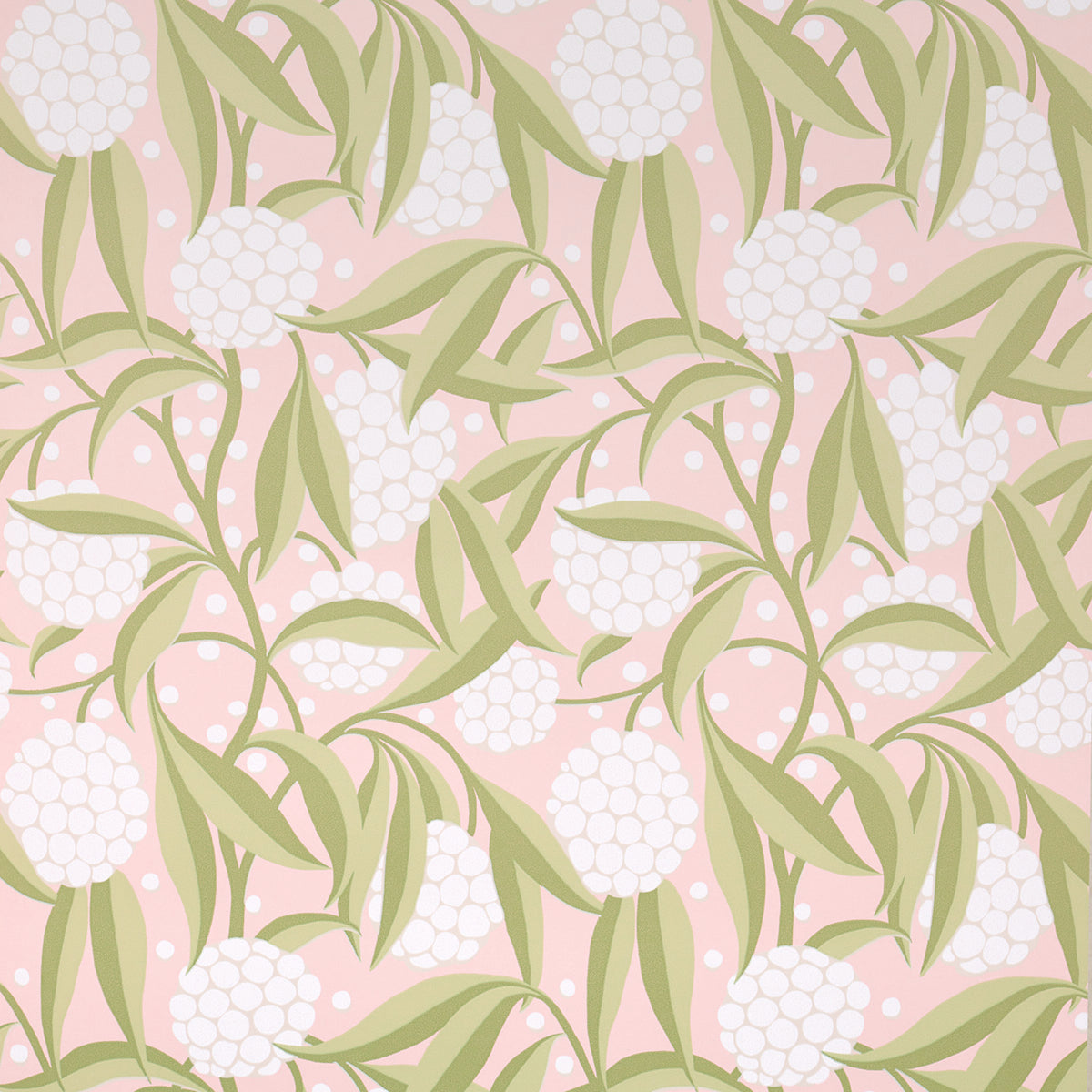 Use:A painterly floral, Rubus in blush features stylized two-tone leaves and large graphic globes of flowers that will gracefully dance across walls. Also available as a fabric.