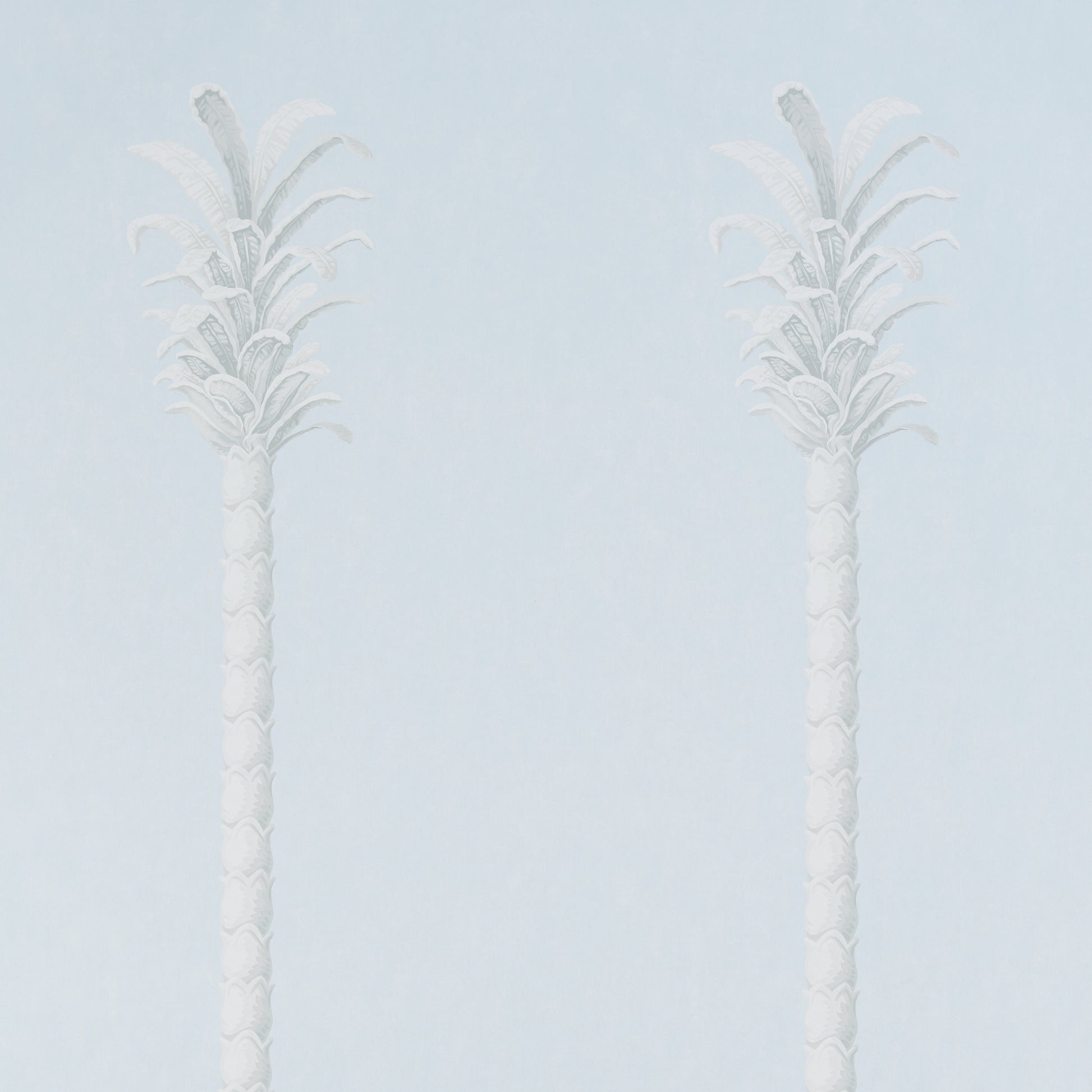 Use:Inspired by artwork in his personal collection, Miles Redd's Villa Palm Panel in blue features two palms presented as classical columns topped with a showy crown of feather-like leaves. Done in soft focus and small scale, these wallpaper panels are designed to stand on their own or be cut up and used in a variety of ways.