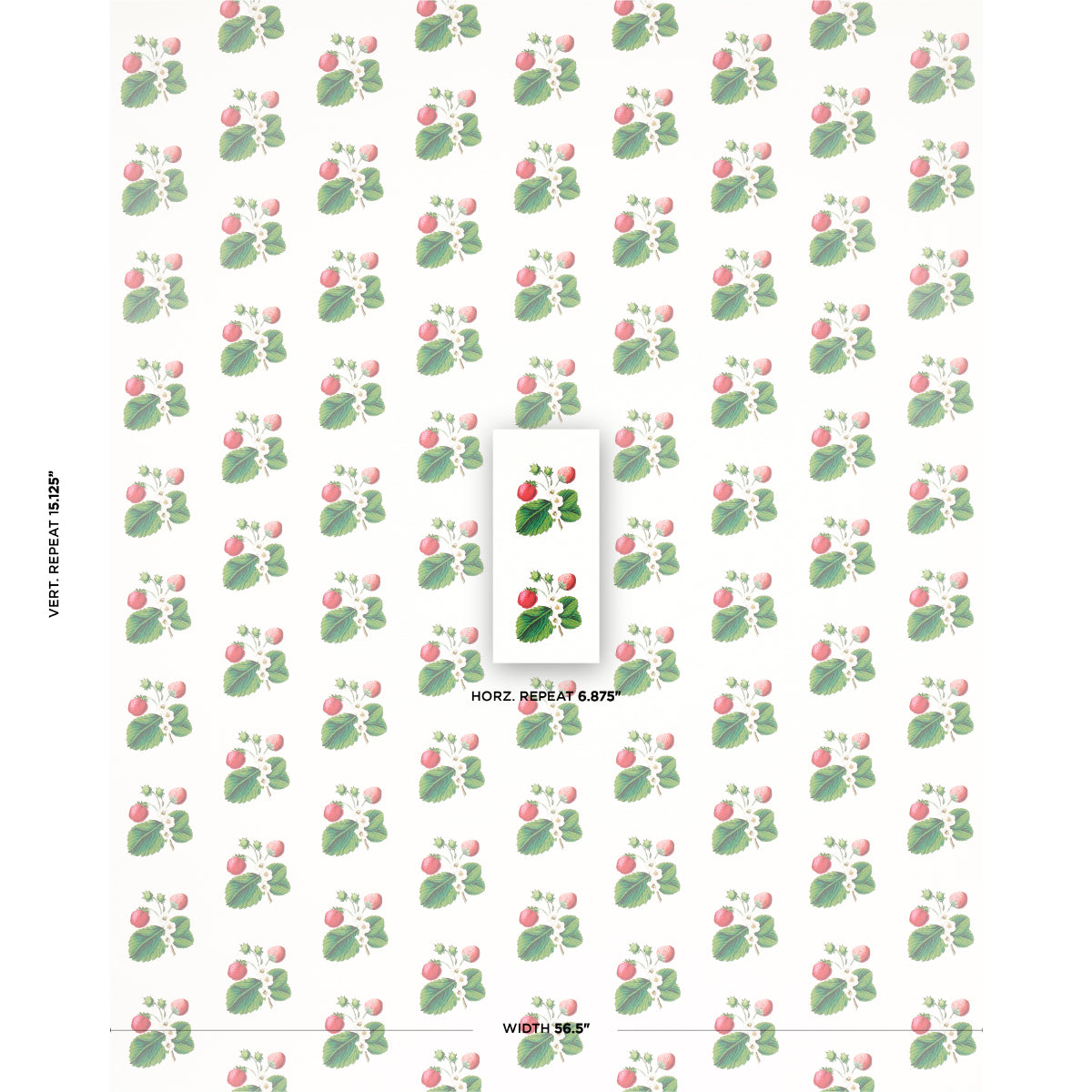 Use:Inspired by traditional botanicals and created in collaboration with fashion designer Johnson Hartig, Strawberry Hill in white is a versatile wallpaper that looks equally fabulous in formal and informal rooms. This cheerful mid-scale design, with its simple offset grid of strawberry blooms, plays beautifully with other patterns. Also available as a fabric.
