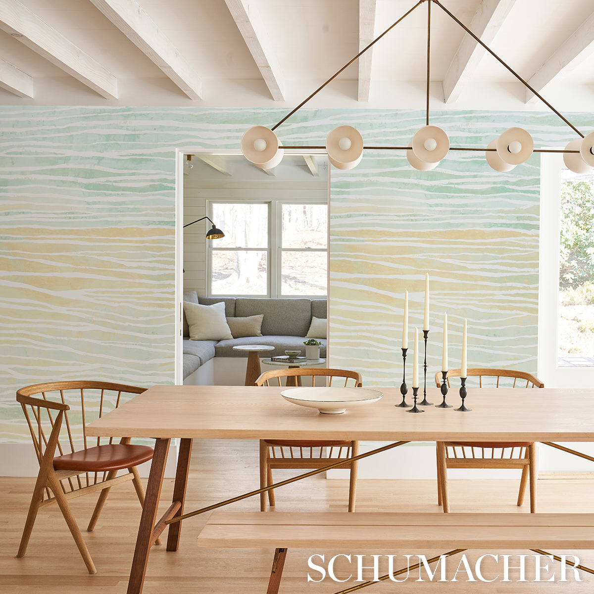 Use:Based on art by Abel Macias, Terra Panel Set in jade is a unique two-panel wallpaper design inspired by desert rock formations. This large-scale pattern features an irregular stripe effect, intriguing tonal variations and visible brushstrokes. It's printed on a smooth, flat ground and has a striking hand-painted look. Use it to wrap an entire room or on a single focal wall to create drama and atmosphere.