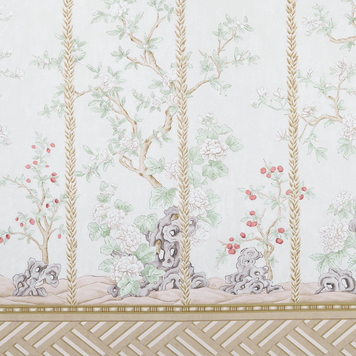 Use:With its fanciful flora and rhythmic arches, Victoria Panel Set is an exquisite chinoiserie wallpaper design that was hand-painted in our studio. Devised to be cut and configured to create a custom effect, this elegant two-panel set creates a romantic atmosphere and adds instant architecture to a room.