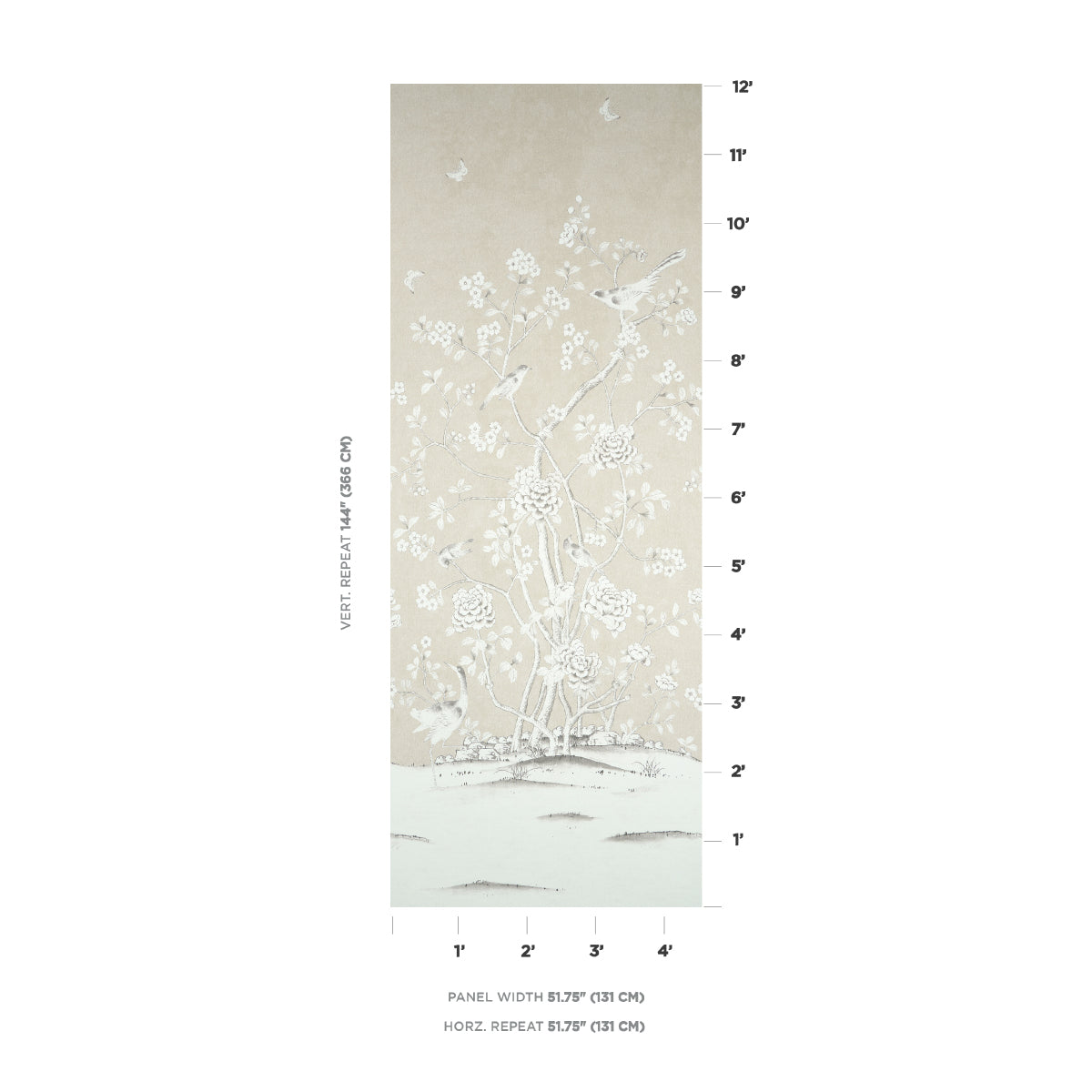 Repeat:VERT. 144" (366CM) HORIZ. 51 3/4" (131CM) inches