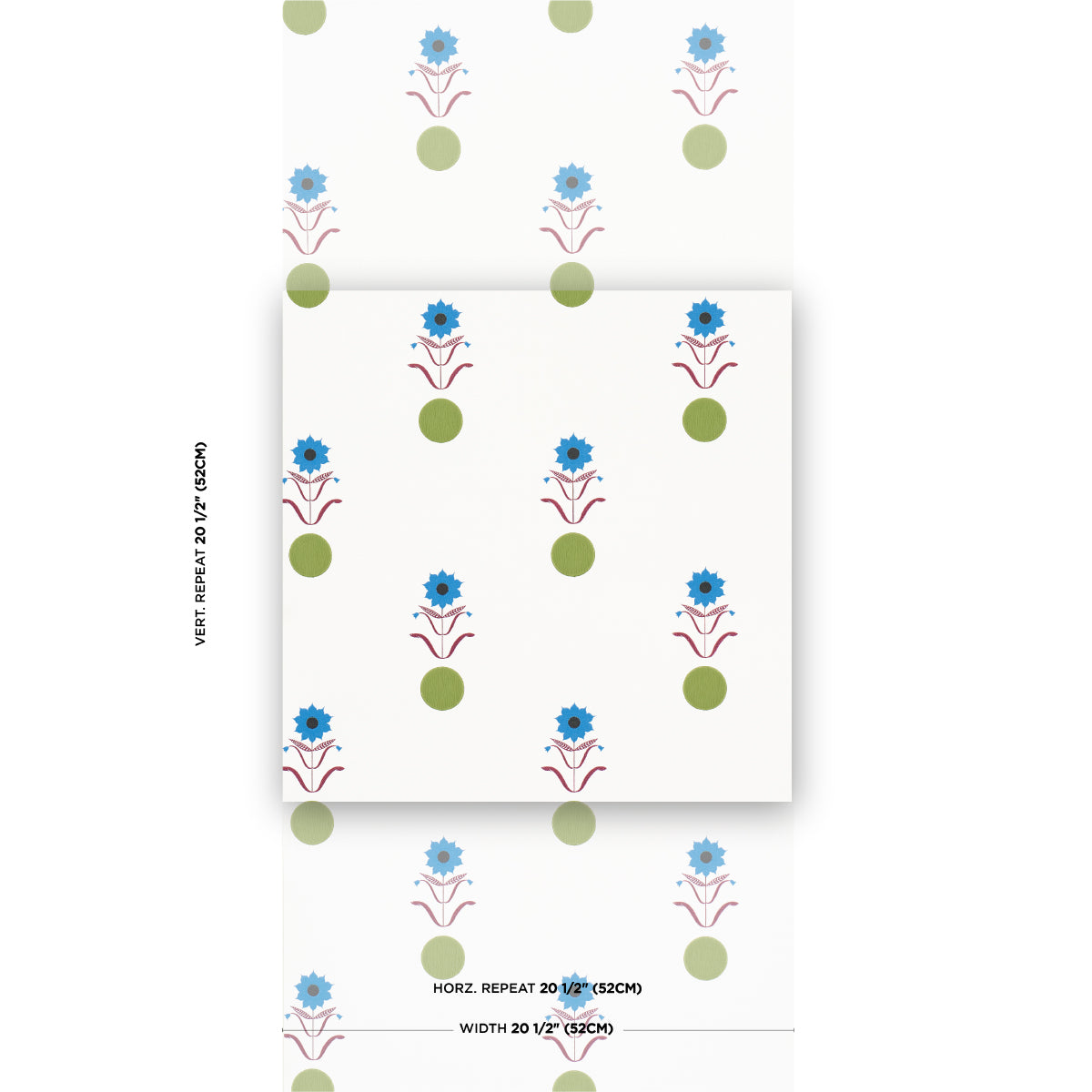 Use:Peg Norriss - the brainchild of designer Barrie Benson and gallerist Chandra Johnson - works with leading contemporary artists to create showstopping wallpapers. Forget Me Dots derives its playful abstract pattern from moon motifs in paintings by artist Clare Rojas. With its unexpected combination of modern geometric forms and traditional floral elements, this unique medium-scale wallpaper makes a memorable statement, whether it accentuates a focal wall or wraps an entire room, and layers beautifully with Forget Me Nots fabric.