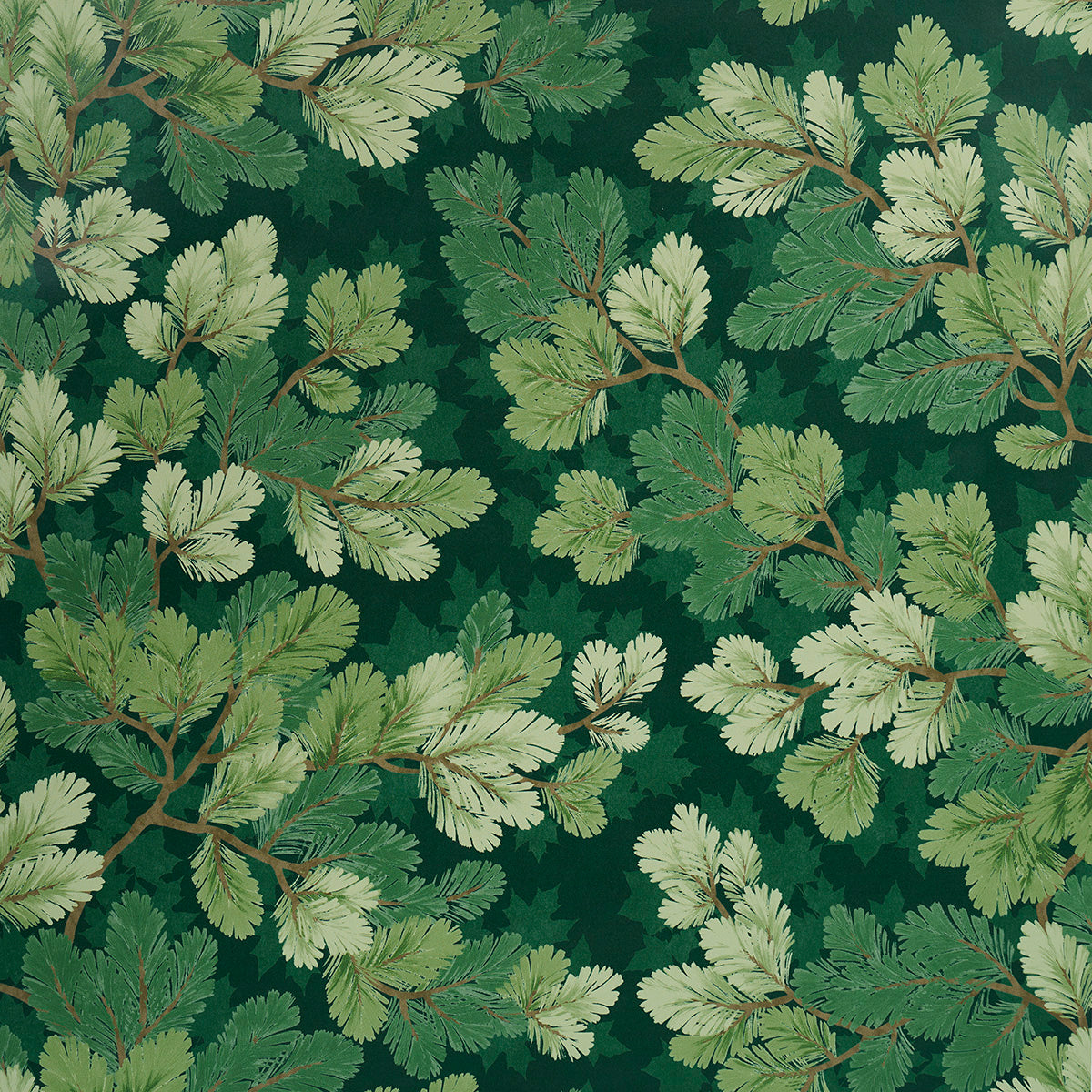 Use:Based on artwork hand-painted in our studio, Covey Hedge derives its flat stylized foliage and rich colors from Japanese block prints and Persian miniatures. Printed on a lovely semi-coated ground, this medium-scale wallpaper is a wonderfully transporting botanical that features lush layers of maple leaves and pine boughs. Also available as a fabric.