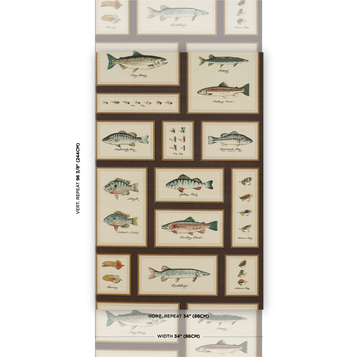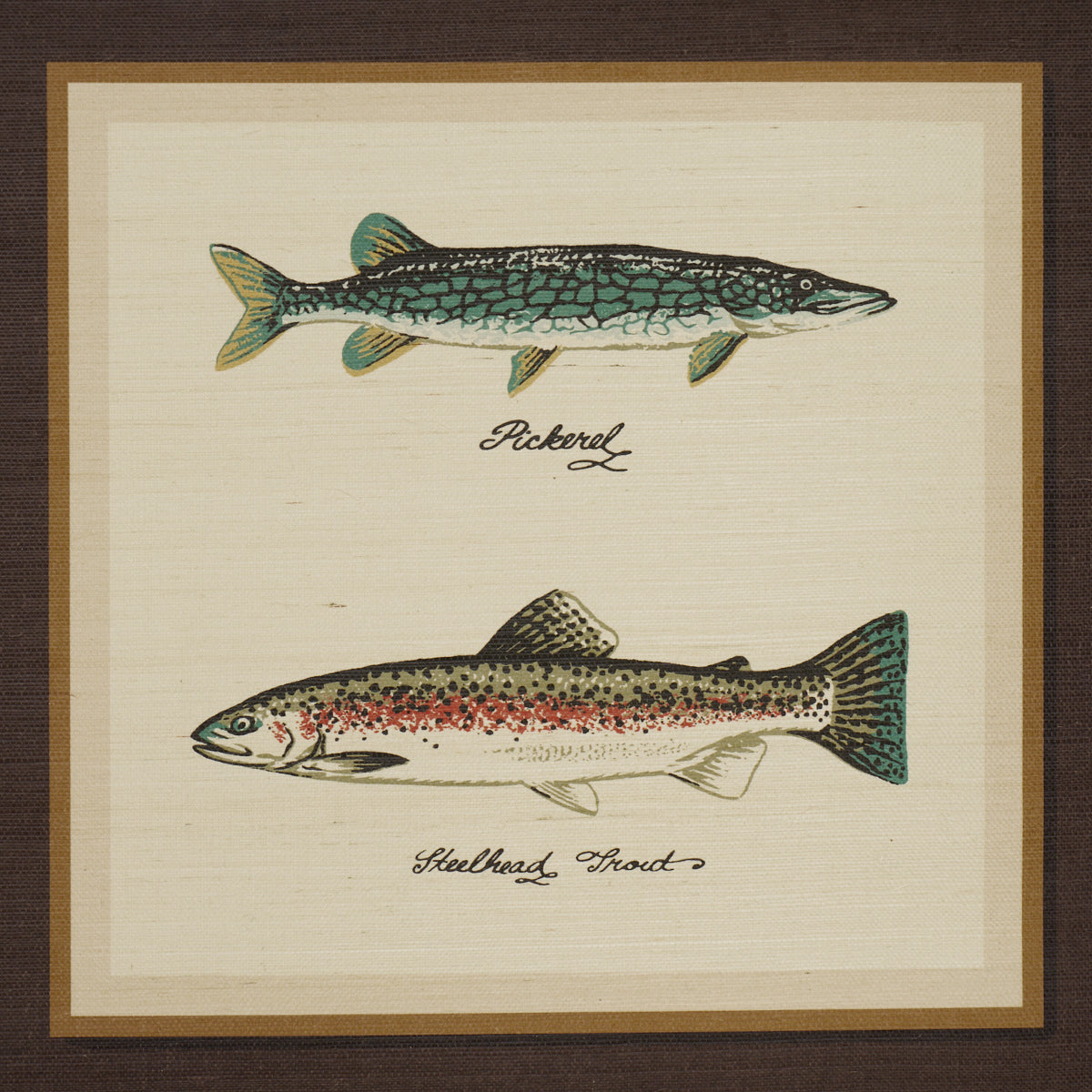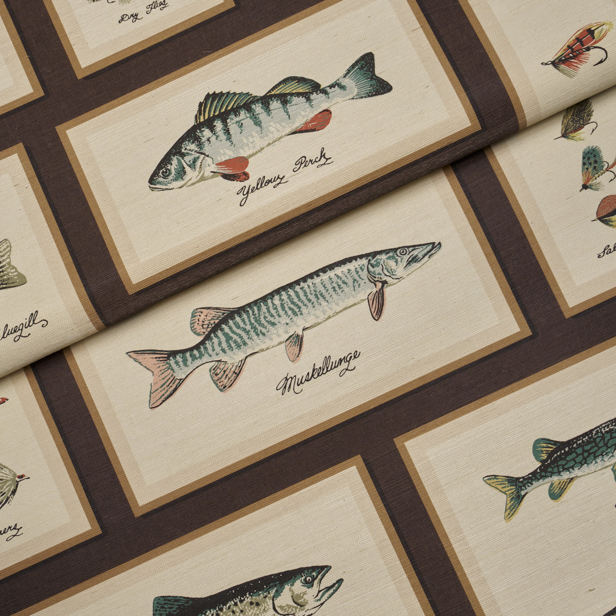 Use:Our studio breathed new life into a documentary print when it created Jamie's Trophies Sisal wallpaper, a fun-spirited ode to the art of angling. A salon-style arrangement of framed fish prints and feather flies is printed on a sisal ground, giving this textural large-scale trompe l'oeil its unique charm and graphic presence.