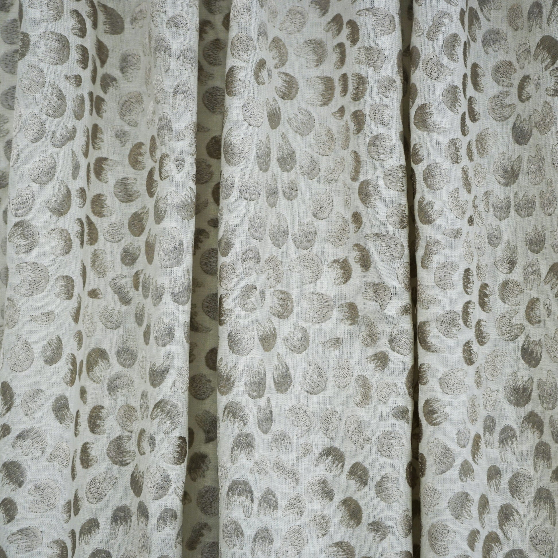 Use:Peony is a beautiful abstract floral embroidery fabric. Featured in a soft gray on a warm bisque colored linen basecloth. Peony is perfect for drapery and accessory use.