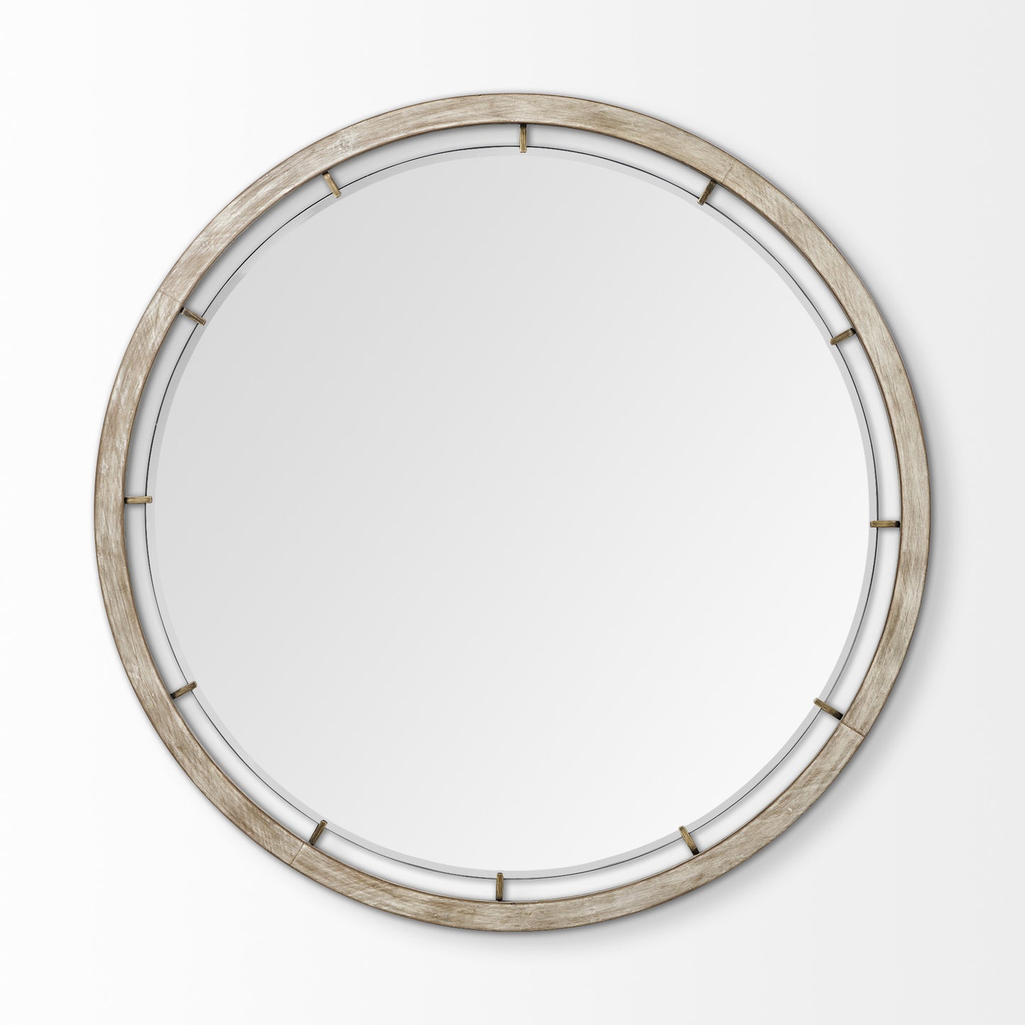 54" Brown Round Wood And Metal Framed Accent Mirror
