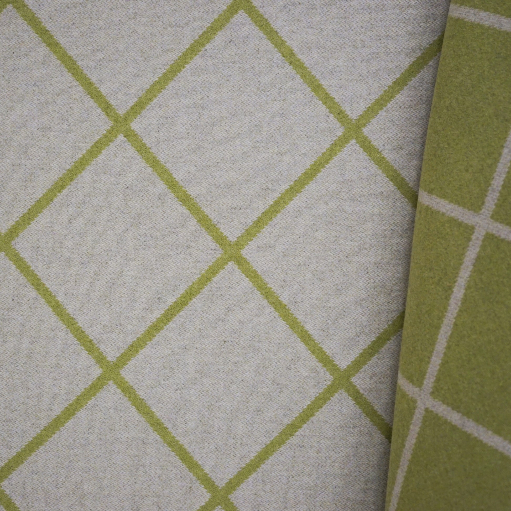 Use:You might want to change it up with this reversible wool diamond design fabric. In hues of lime green and cream coloration.