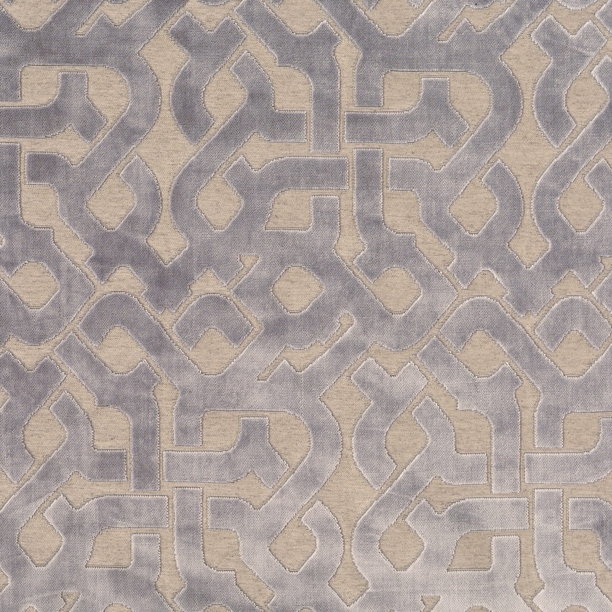 Use:Enrich any room with this stunning patterned geometric velvet fabric. In a soft dove gray and beige coloration.