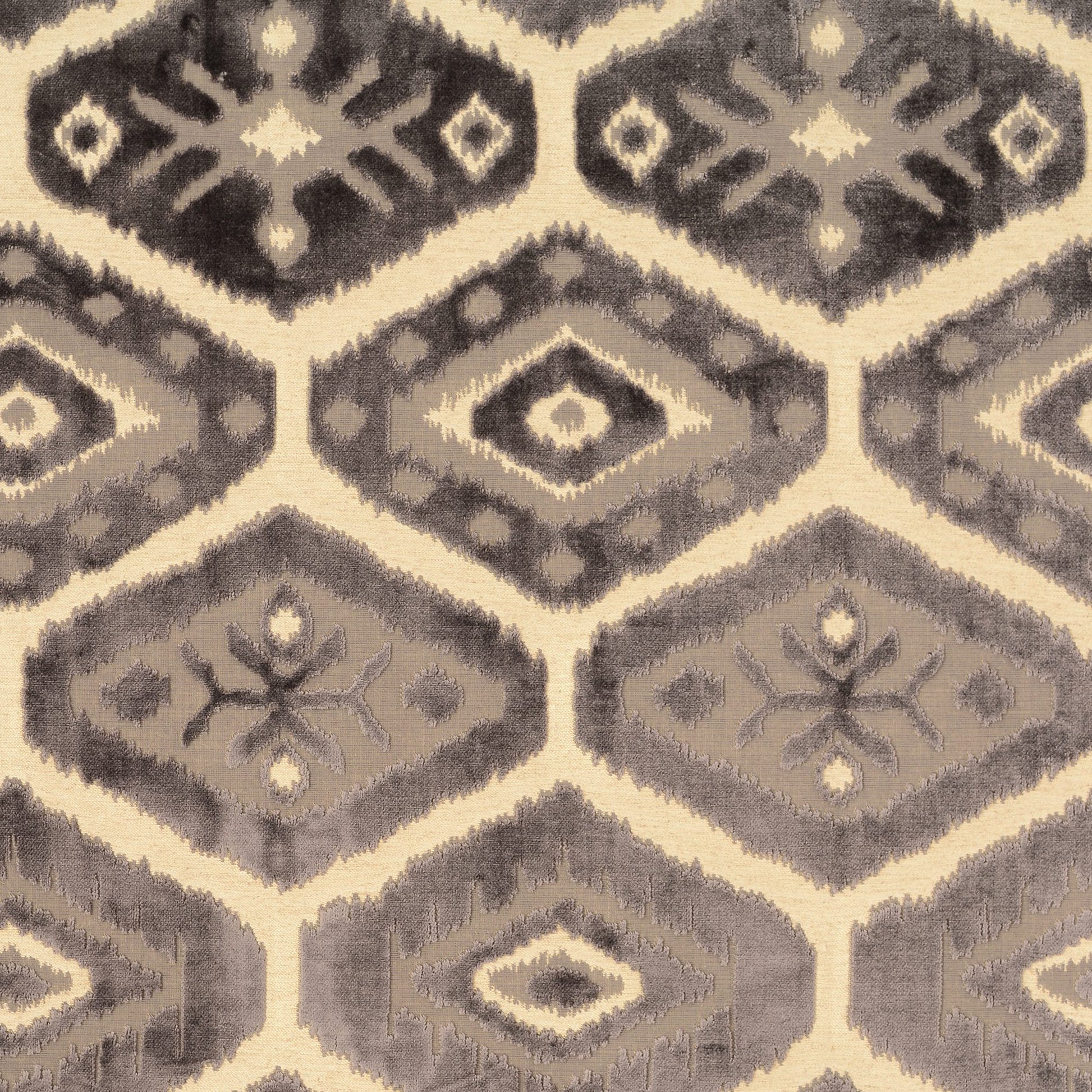 Use:As the name entails "Captivate" yourself with this eye-catching patterned velvet fabric, ogee design. Gray on beige coloration.