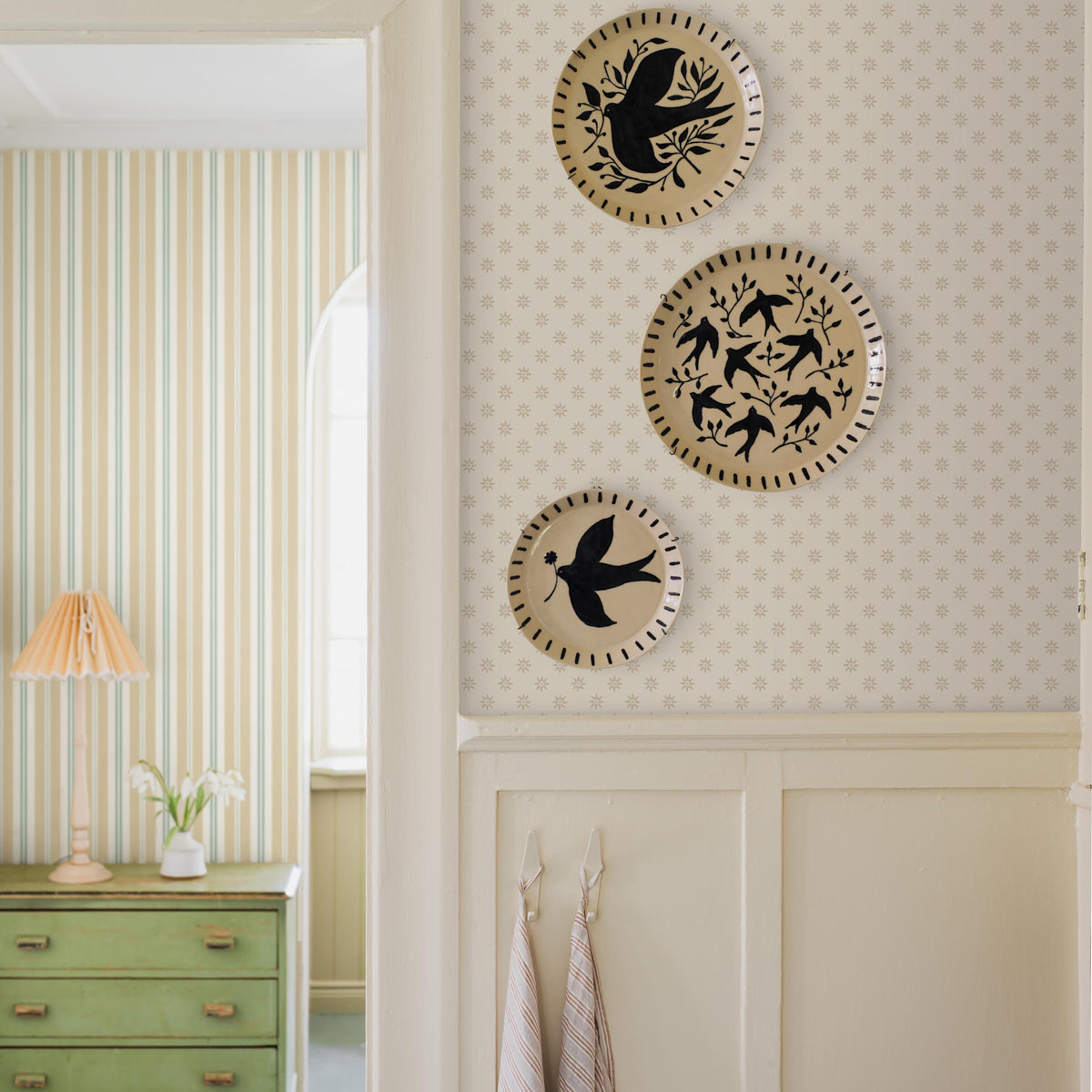 Use:Inspired by the perennial arctic starflower, Bor?stapeter's Skogsstj??rna wallpaper reflects the serene beauty of a Swedish spring forest. The gravure-printed design's dainty small-scale pattern is subtle yet striking in any room. This product is FSC Certified and available in North America exclusively through Schumacher.