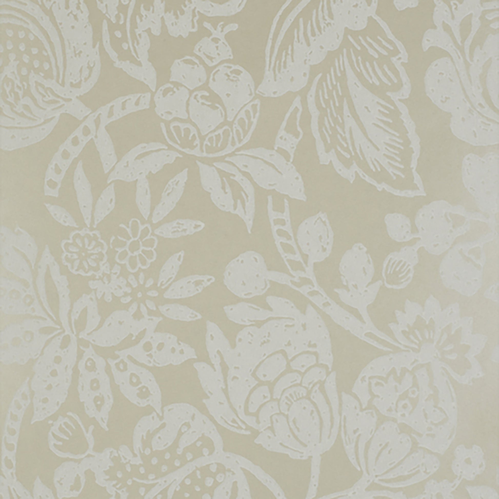 Use:A textured large scale tropical floral design wallpaper, in a buttercream and metallic citrus hue.