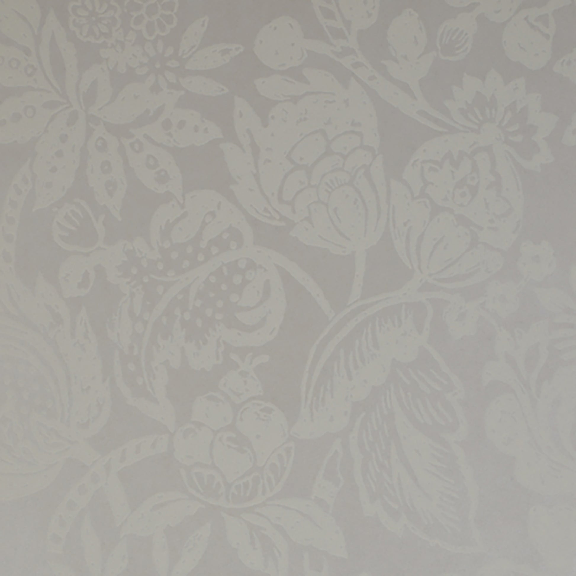 Use:A textured large scale tropical floral design wallpaper, metallic alabaster design on a beige background.
