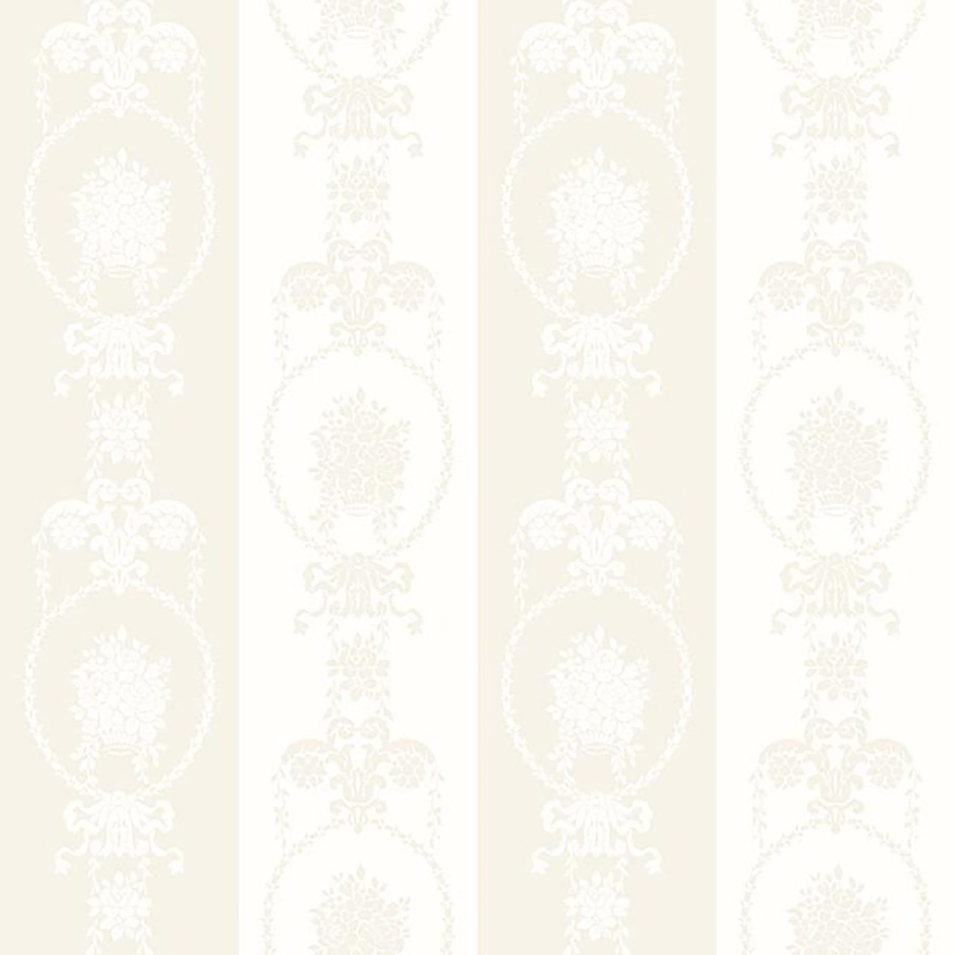 Use:Wide stripe with a floral medallion wallpaper design, alternating colors of ivory and cream tones with a pearlescent finish.