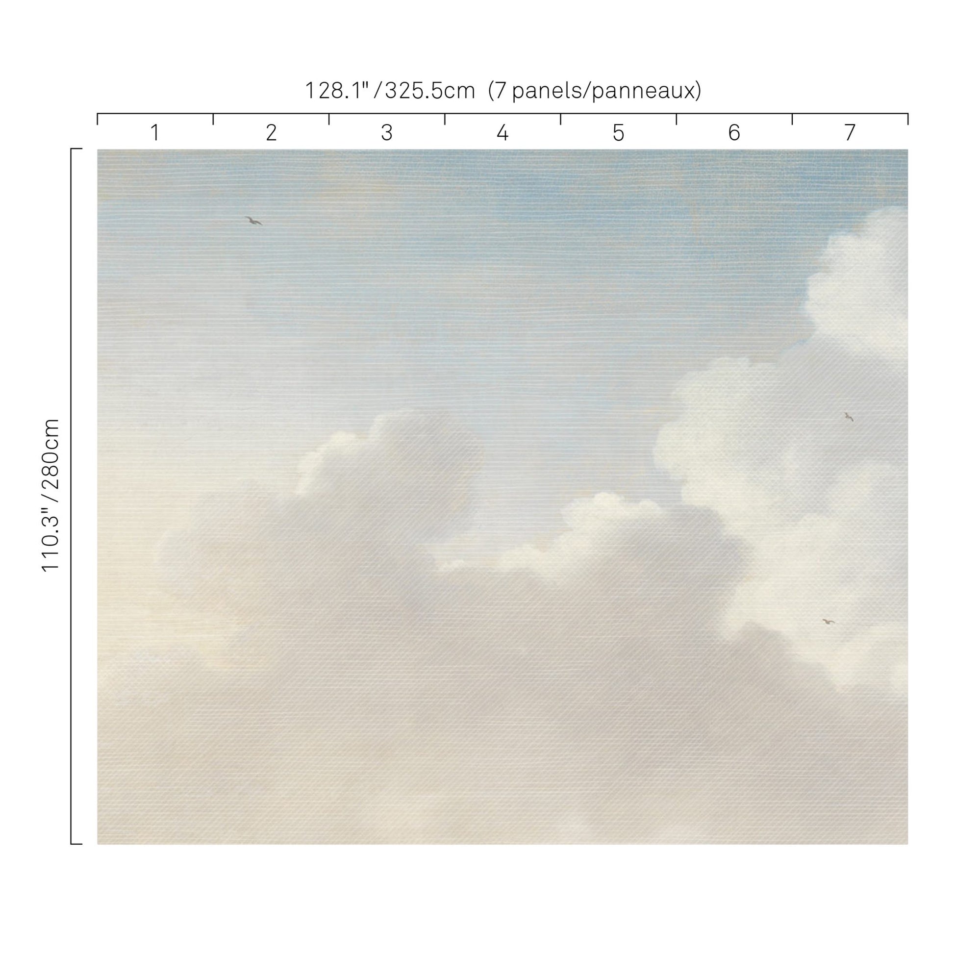 Use:You can dream peacefully amidst the clouds, in this contemporary style vinyl wall mural. In calming sky blue and cream tones.