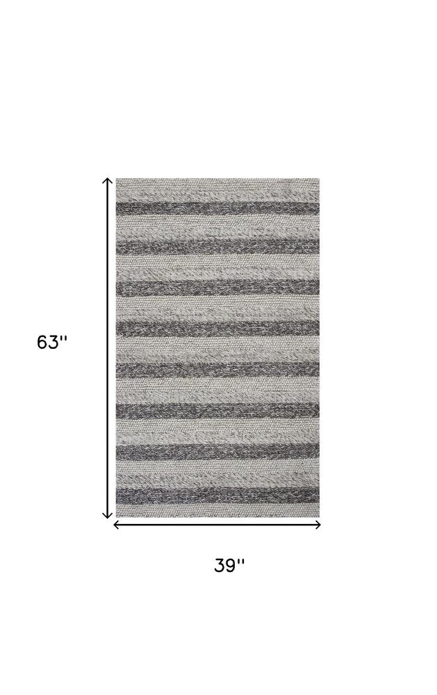 5' X 7' Brown Gray And Ivory New Zealand Lambs Wool Striped Hand Woven Area Rug
