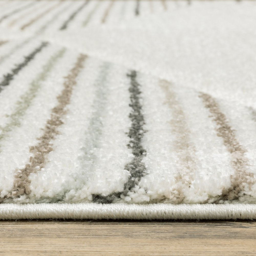 6' X 9' Beige Grey Sage Green Pale Blue Brown And Charcoal Geometric Power Loom Stain Resistant Area Rug