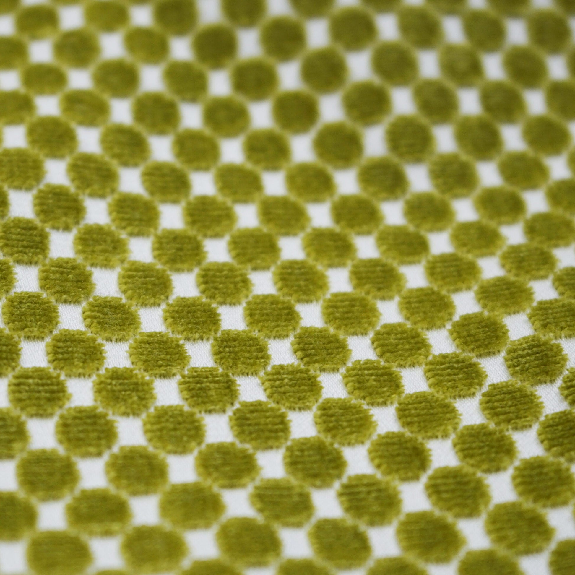 Use:Bright, happy and cheerful describes this patterned velvet polka dot design. Lime green coloration on a cream basecloth.