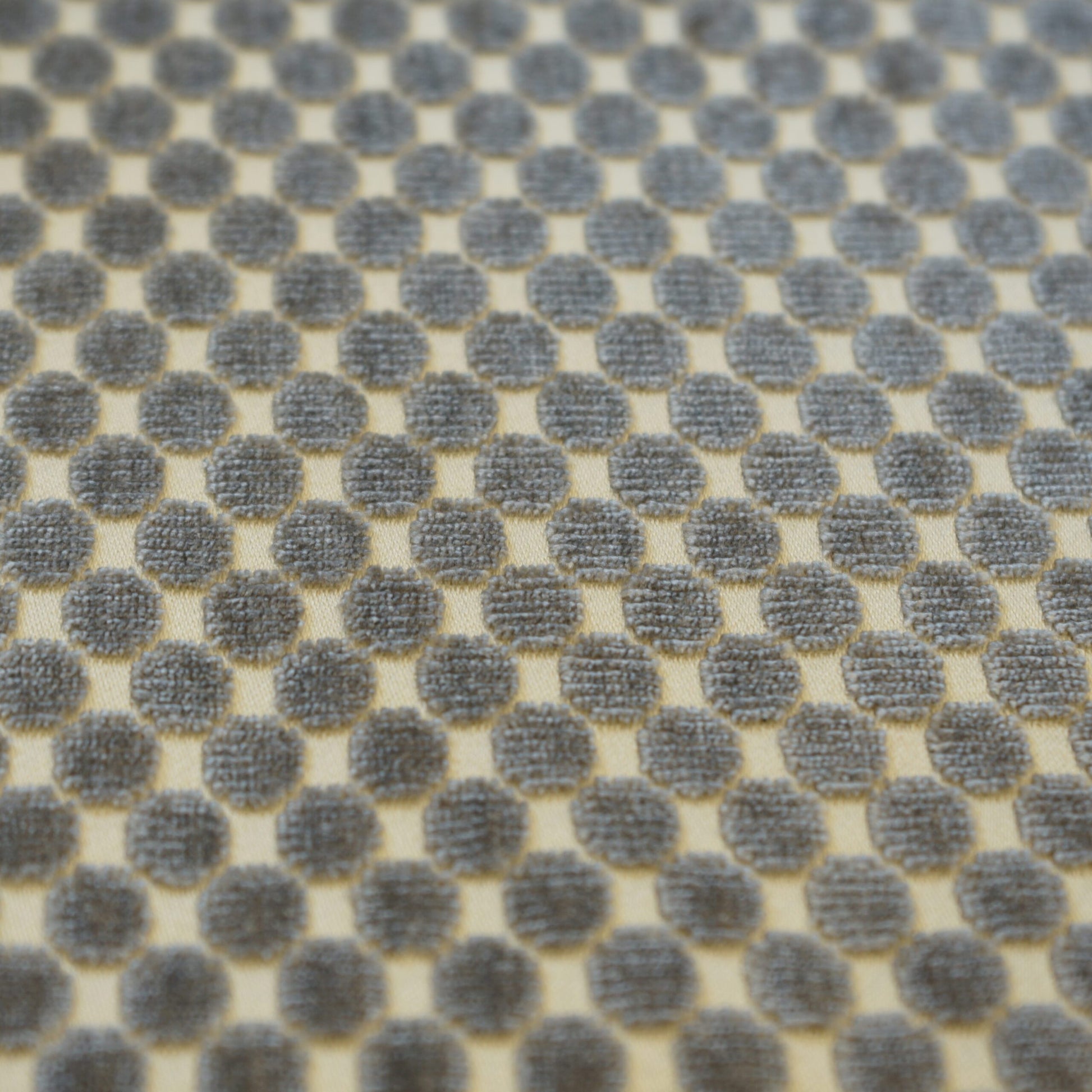 Use:Bright, happy and cheerful describes this patterned velvet polka dot design. Dove gray coloration on a cream basecloth.