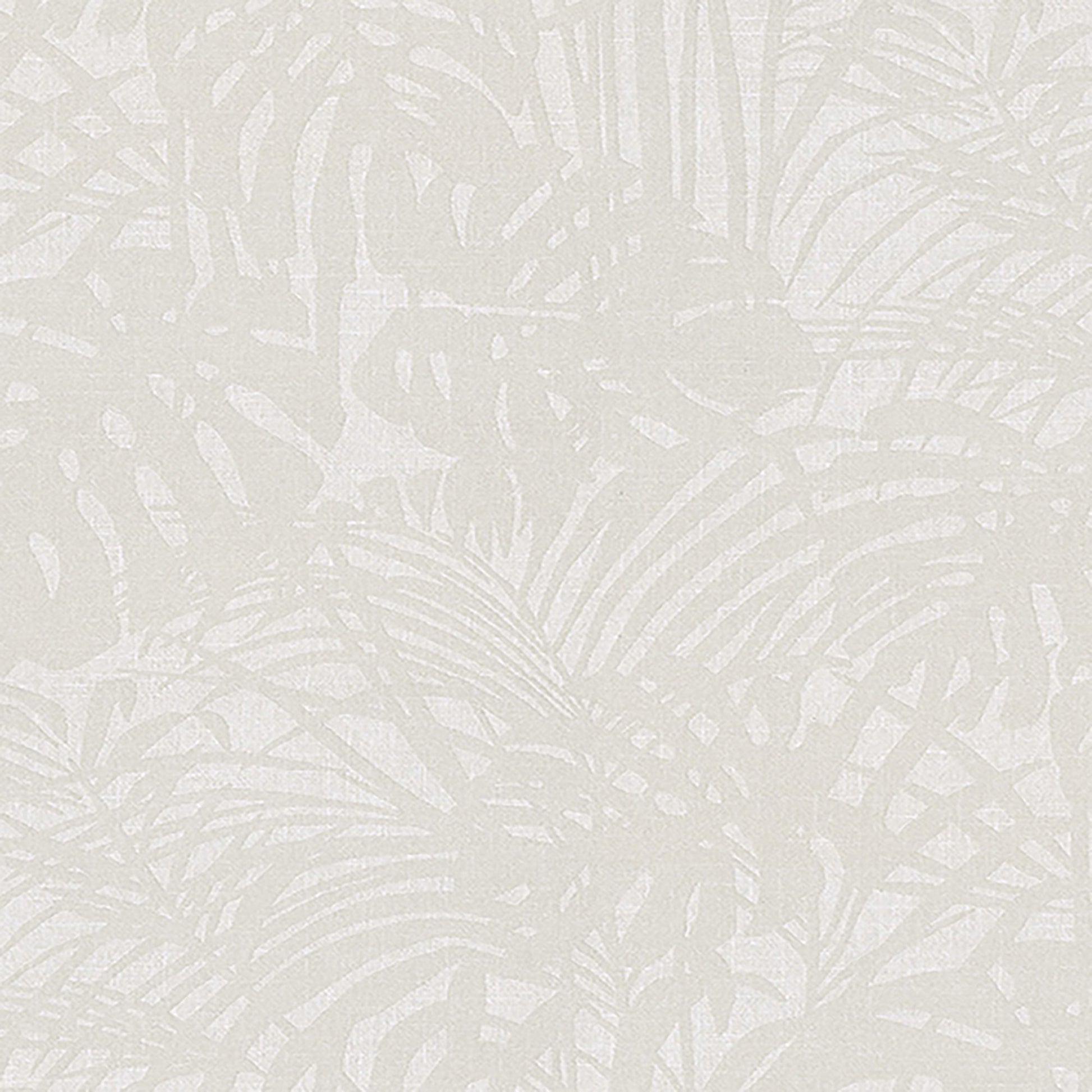 Use:This wallpaper features a beaded abstract palm leaf pattern in pearl on a metallic light gray and cream background.