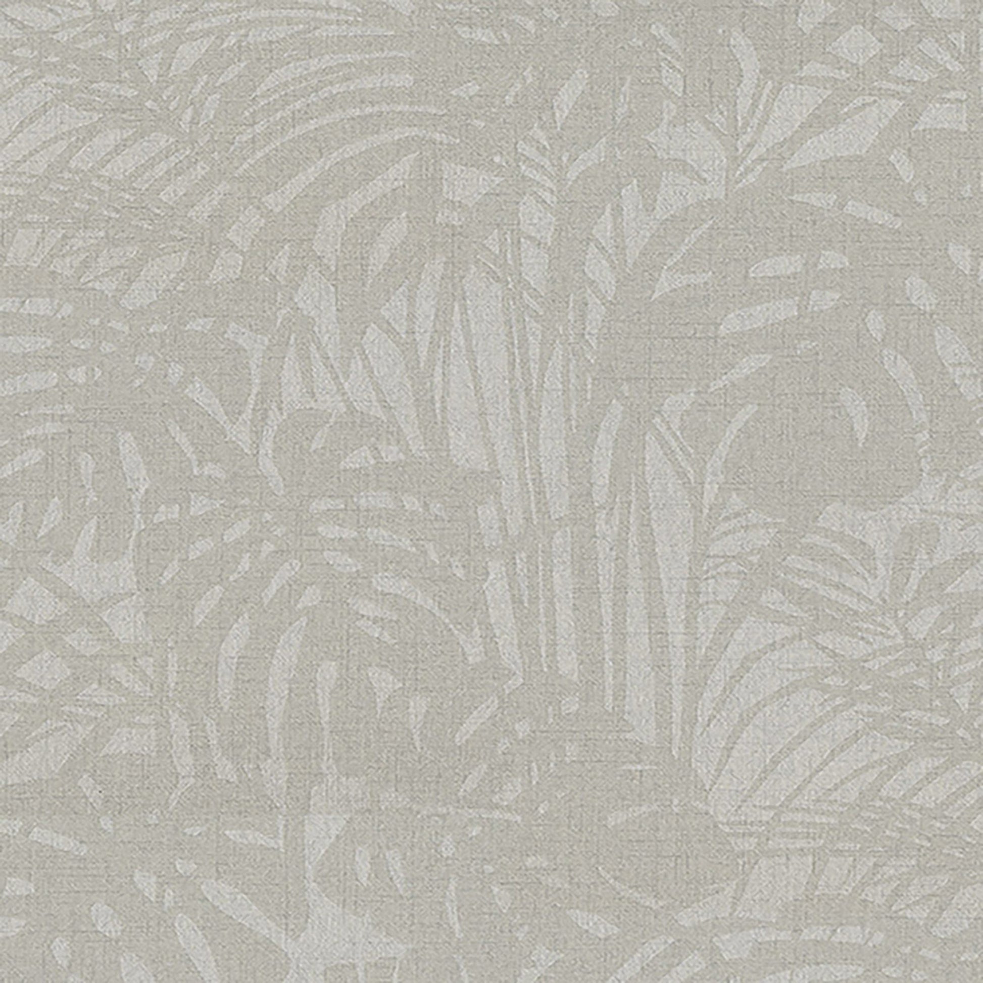 Use:This wallpaper features a beaded abstract palm leaf pattern in gray on a tones of gray metallic background.