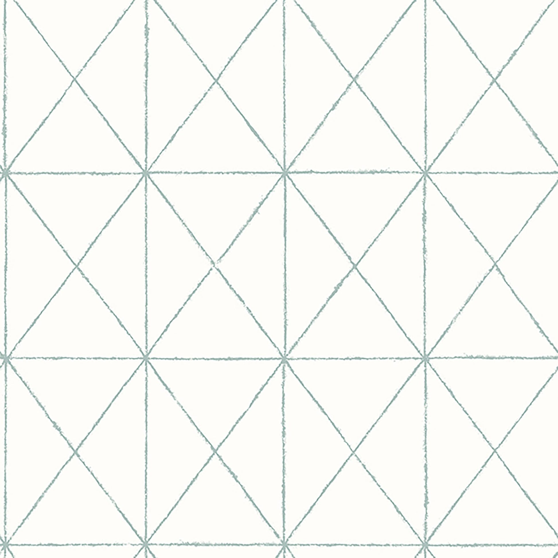 Use:A contemporary geo diamond pattern wallaper. Teal blue design on an ivory ground.