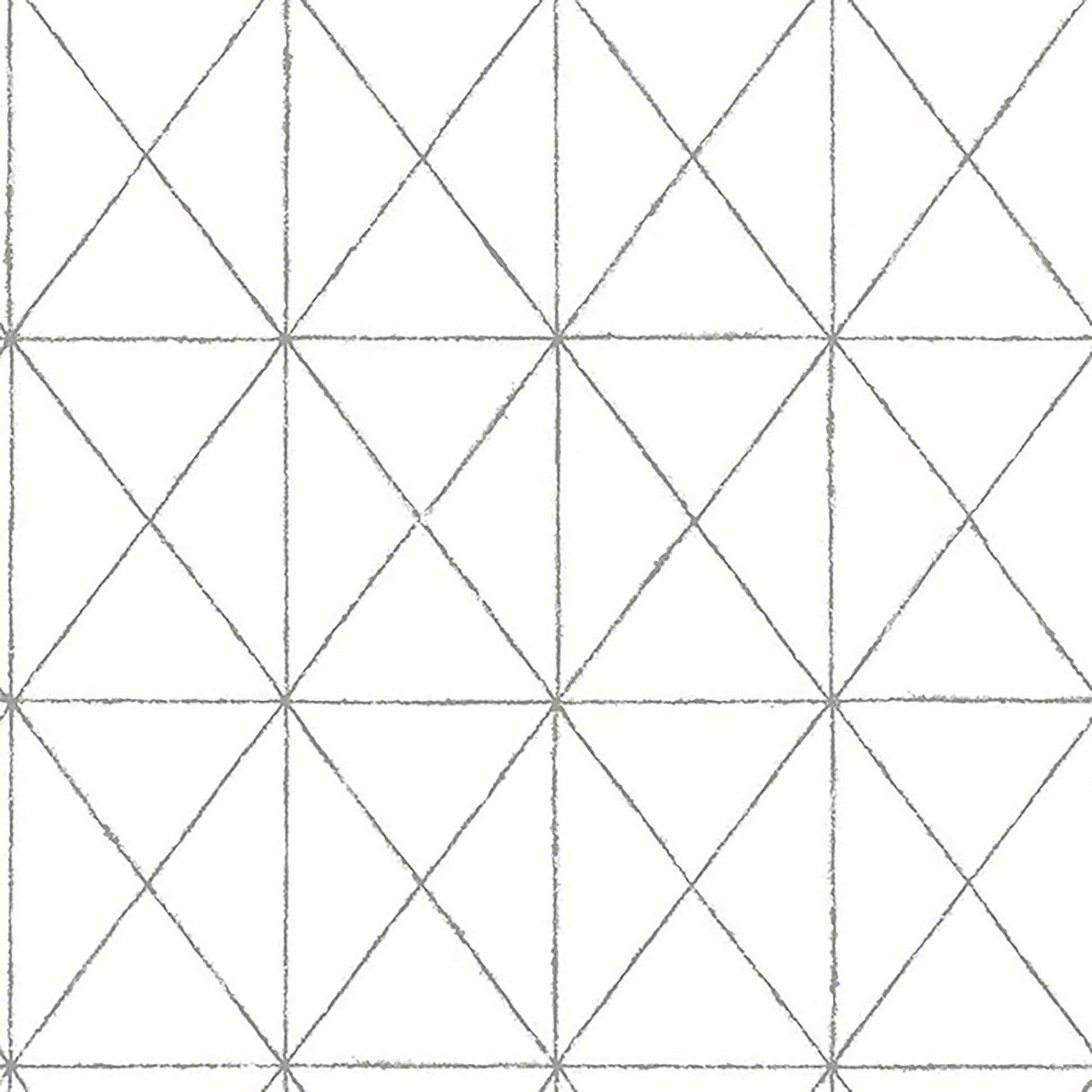 Use:A contemporary geo diamond pattern wallaper. Metallic silver on a an ivory ground.