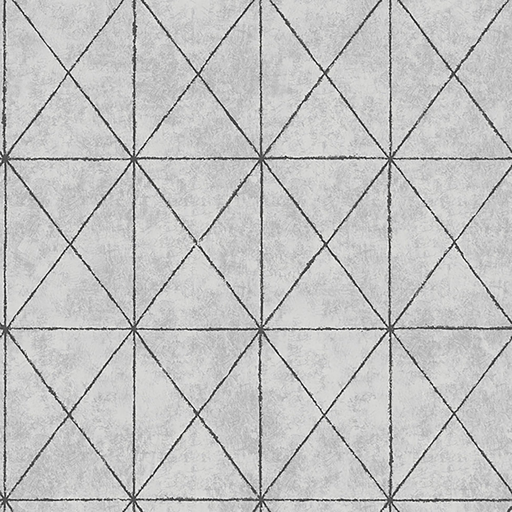 Use:A contemporary geo diamond pattern wallaper. Black on a metallic silver ground.