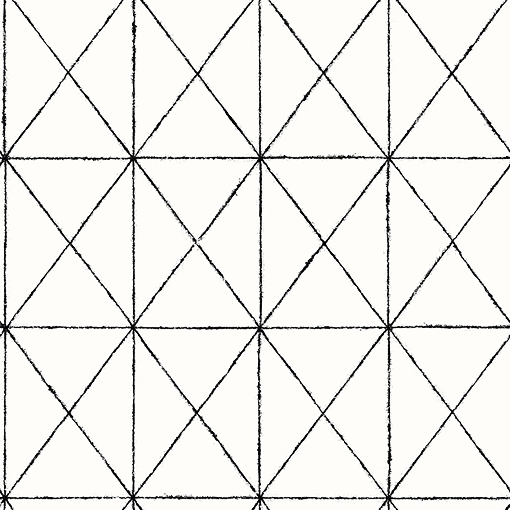 Use:A contemporary geo diamond pattern wallaper. Black on a cream colored ground.