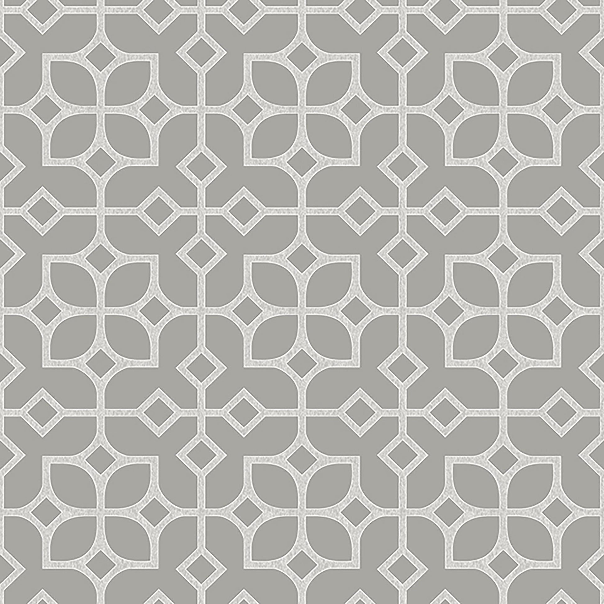 Use:A stylish trellis design wallpaper. In hues of grey and taupe.
