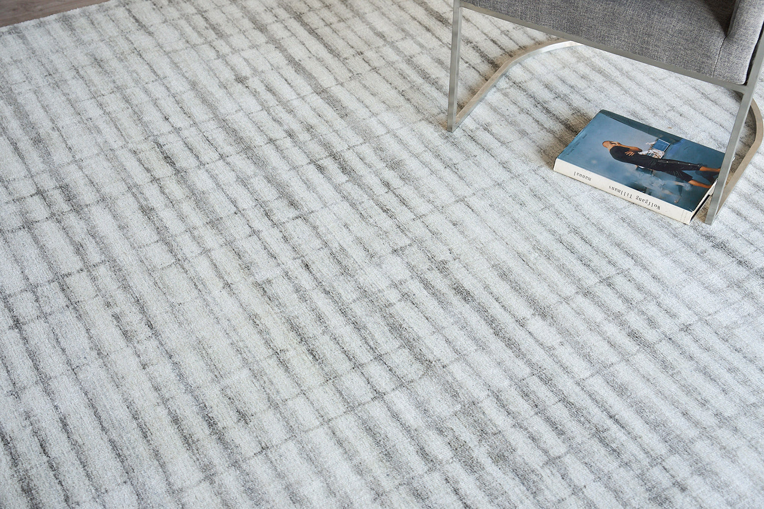 Use:A dense textured loop pile, using a subtle overall design of random width color bands. Using soft colors, chosen to complement the pattern. The simplicity of the all over patten is a luxurious and sophisticated addition to any space.