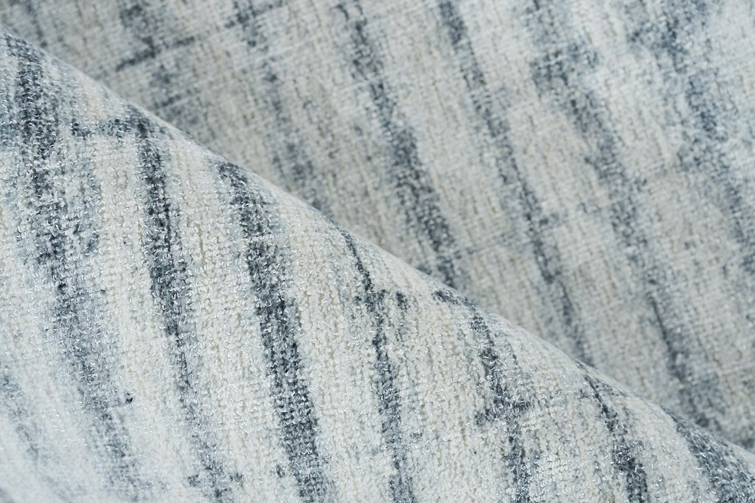 Use:A dense textured loop pile, using a subtle overall design of random width color bands. Using soft colors, chosen to complement the pattern. The simplicity of the all over patten is a luxurious and sophisticated addition to any space.