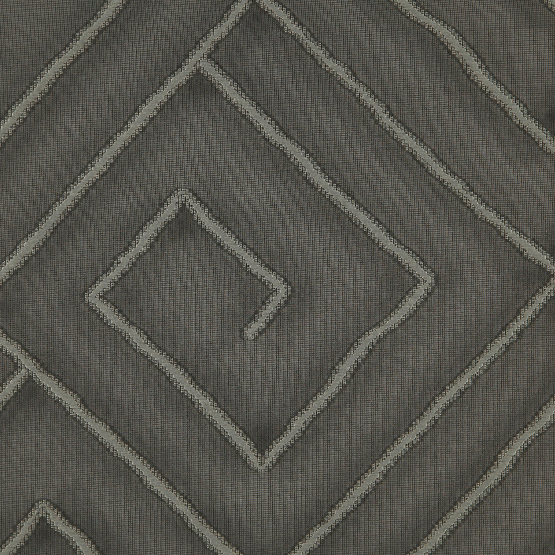 Use:Modern geometric greek key pattern sheer, 100% polyester content, 118" width, great for contract use as well as residential use. Pewter on charcoal base coloration.