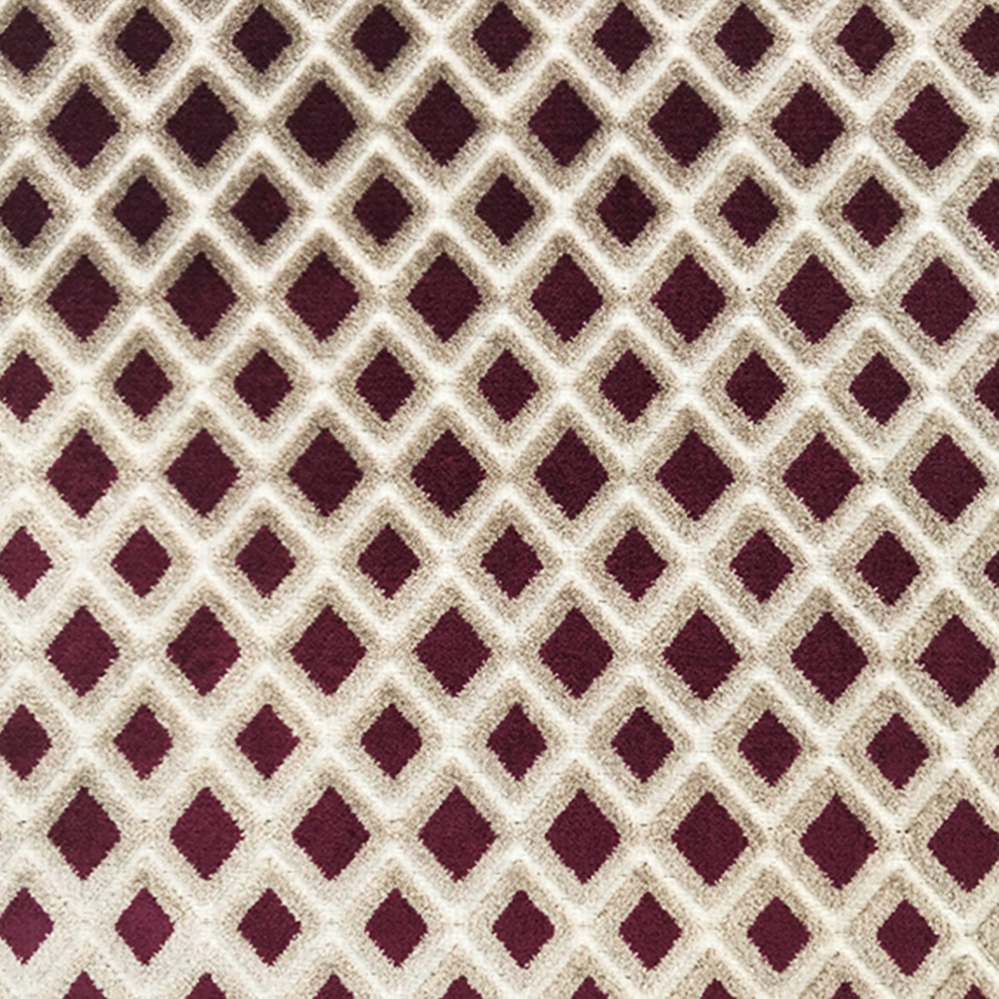 Use:Accentuate any room with this lovely small scale diamond velvet, in rich eggplant and taupe coloration.