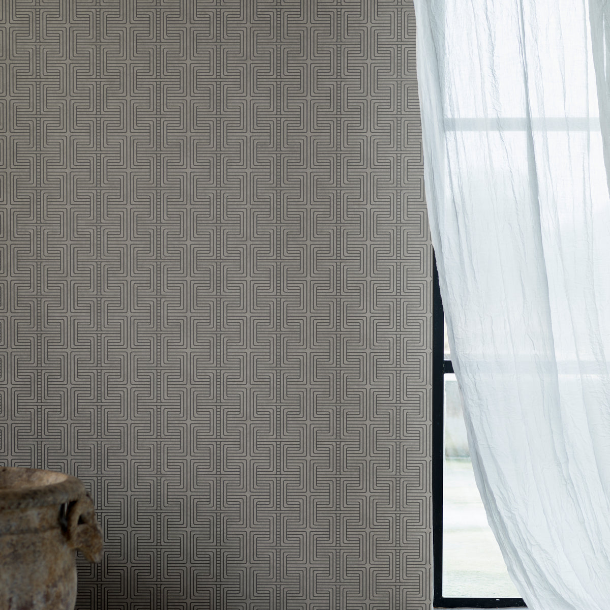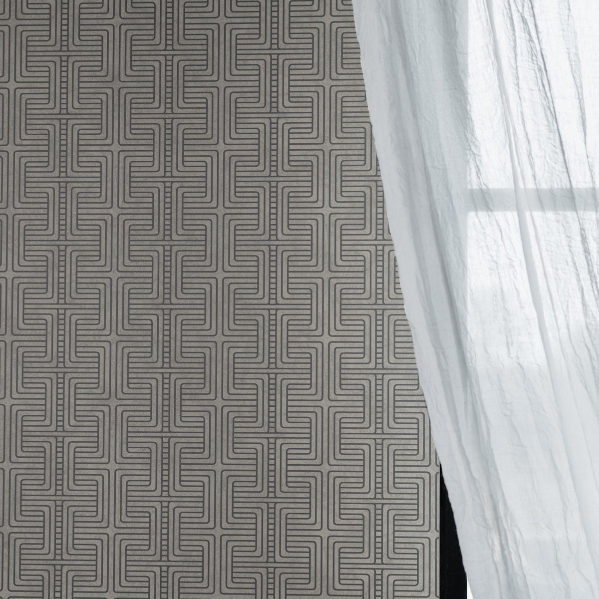 Use:Bor?stapeter's Geo Tribe in pewter is a mazelike pattern of intricate lines. This graphic wallcovering imbues an edgy elegance that is exquisitely stylish. This product is FSC Certified. Available in North America exclusively through Schumacher.