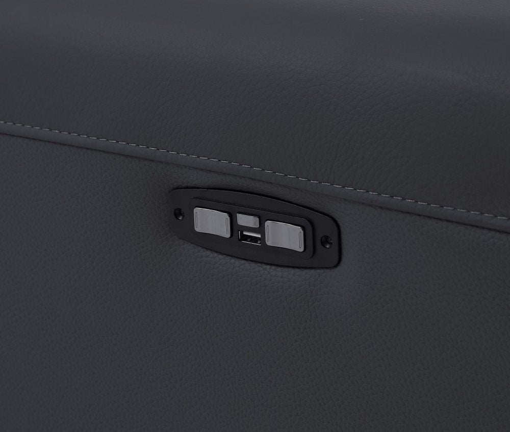 65" Gray And Black Italian Leather Power Reclining Loveseat
