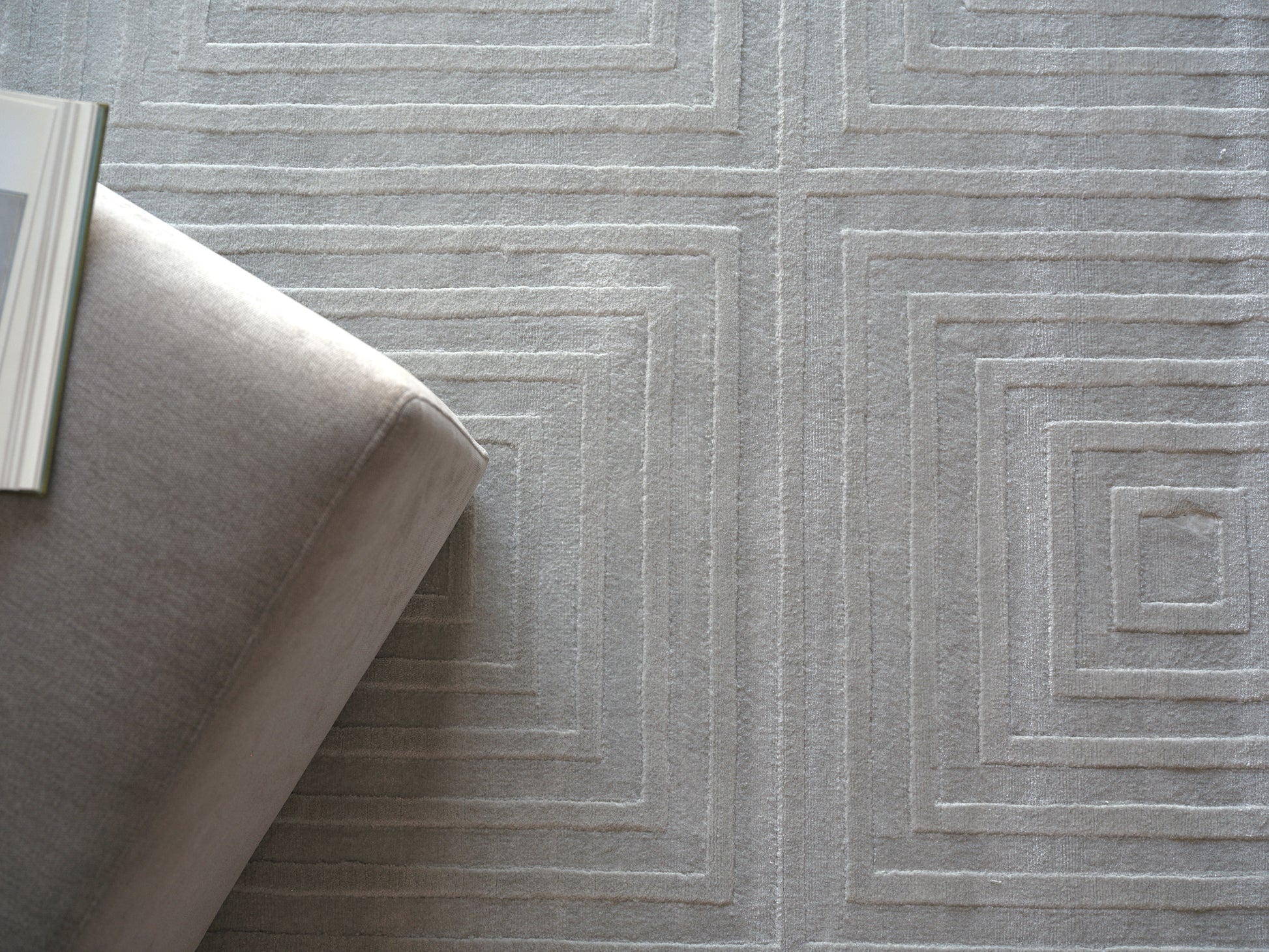 Use:A velvet plush pile finish that has a silky sheen and luster of silk. Made with the performance of Nylon is truly unique. Overall, pattern is the classic repeating box design Ultra-Modern choice for anyone who wants a luxurious and durable rug that is easy to clean and maintain.