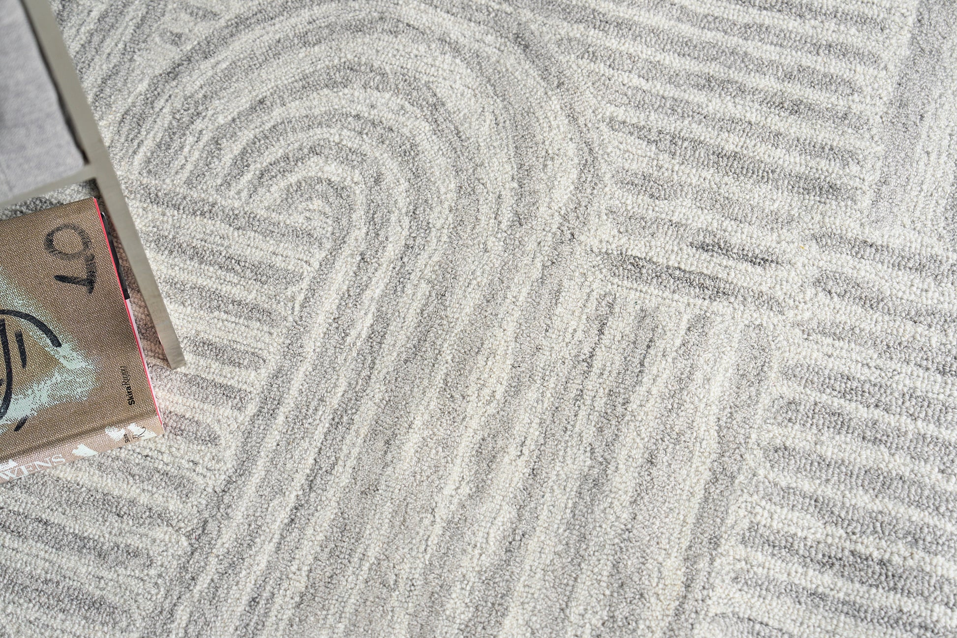 Use:Juno is a hand-tufted 1% wool rug made in a dense loop pile. The use a neutral color foundation with contrasting color, defines the classic modern overall pattern. Wool as the primary material brings warmth, durability, and a luxurious feel to the rug.