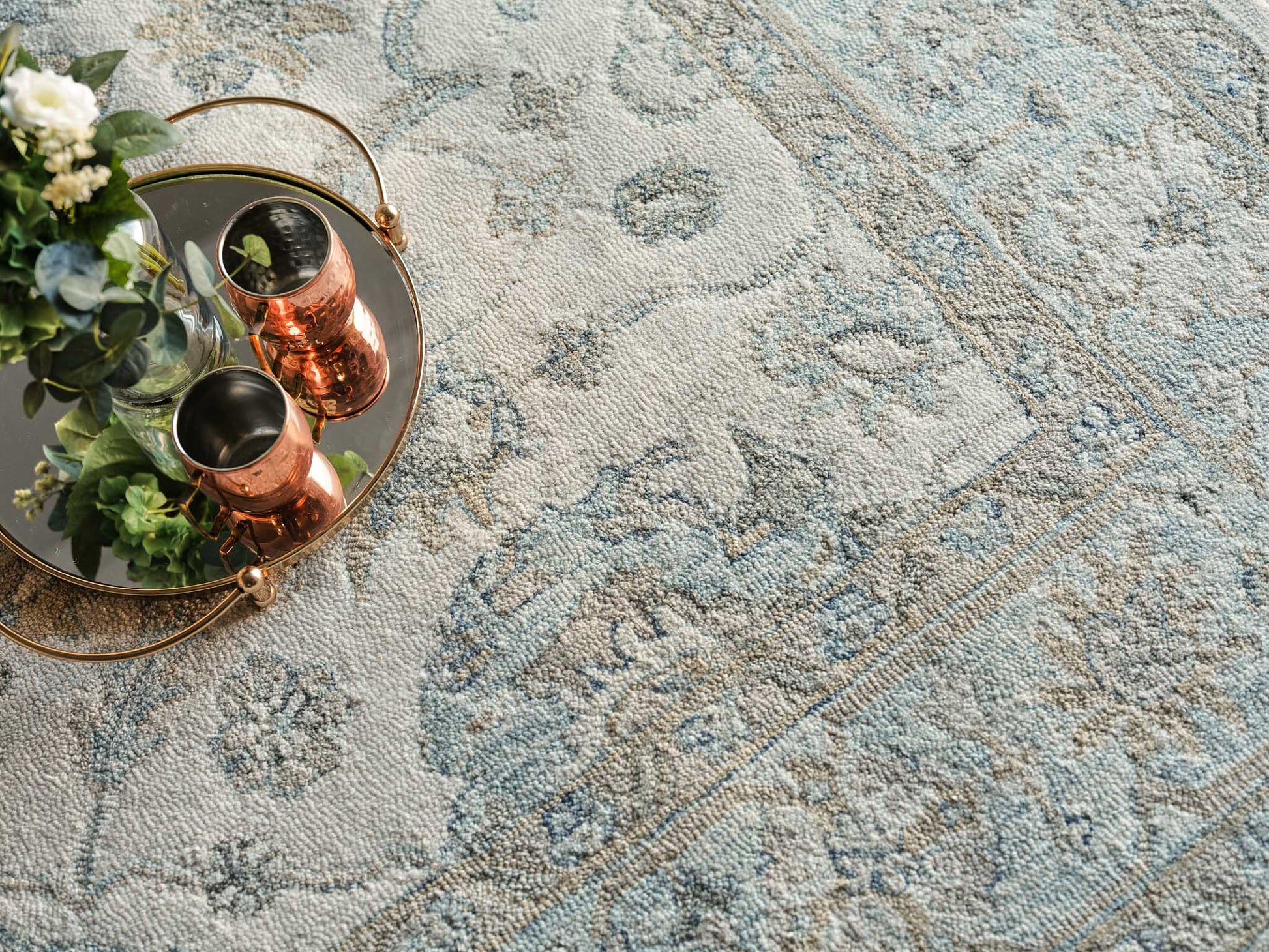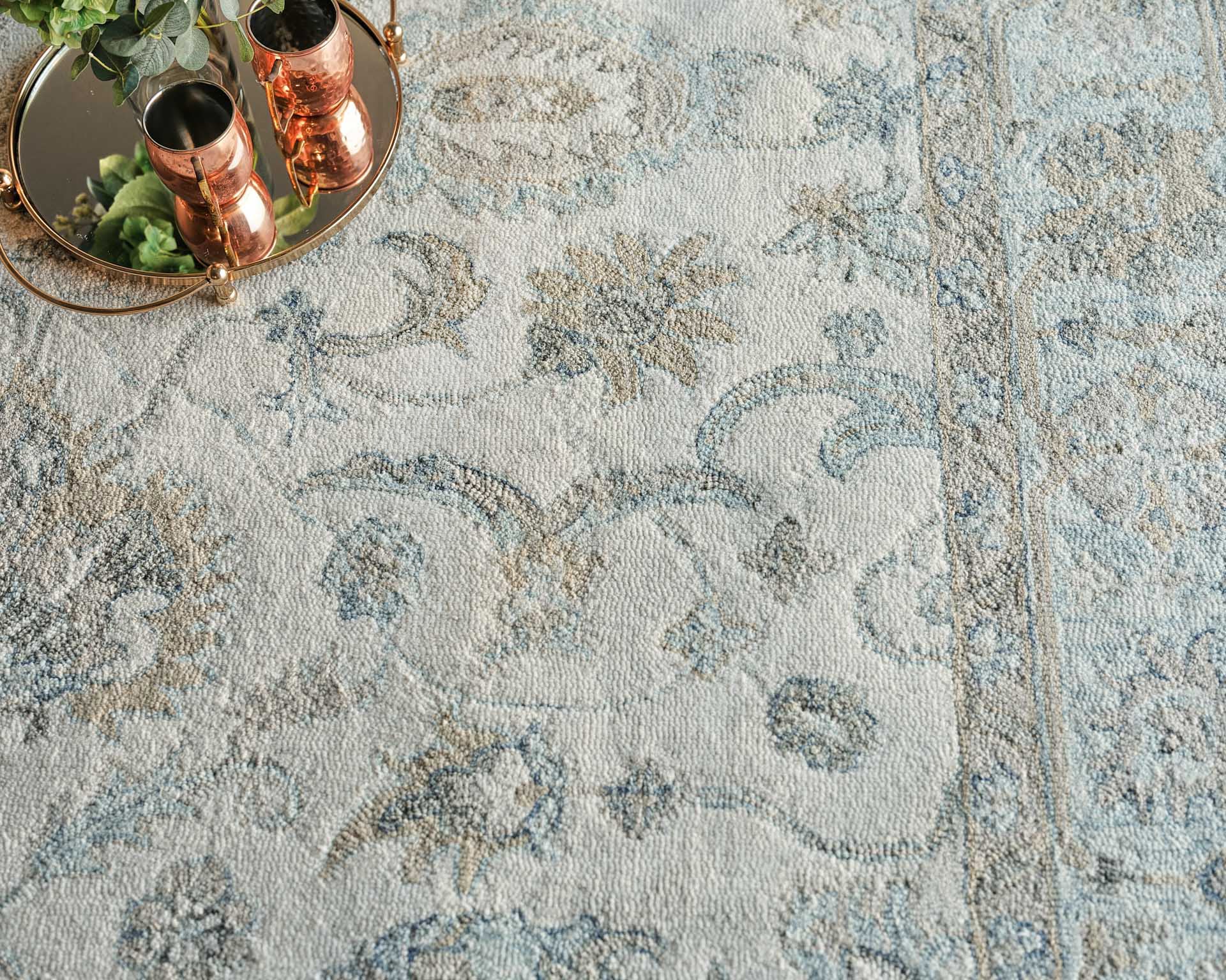 Use:Marietta Oushak collection is a hand-tufted rug made of 1% wool. Capturing the look and spirit of the original Oushak??Ÿ????????????????????????Ÿ??????s. The dense loop pile with the stria colorations completement the traditional design motifs. Wool as the primary material brings warmth, durability, and a luxurious feel to the rug.