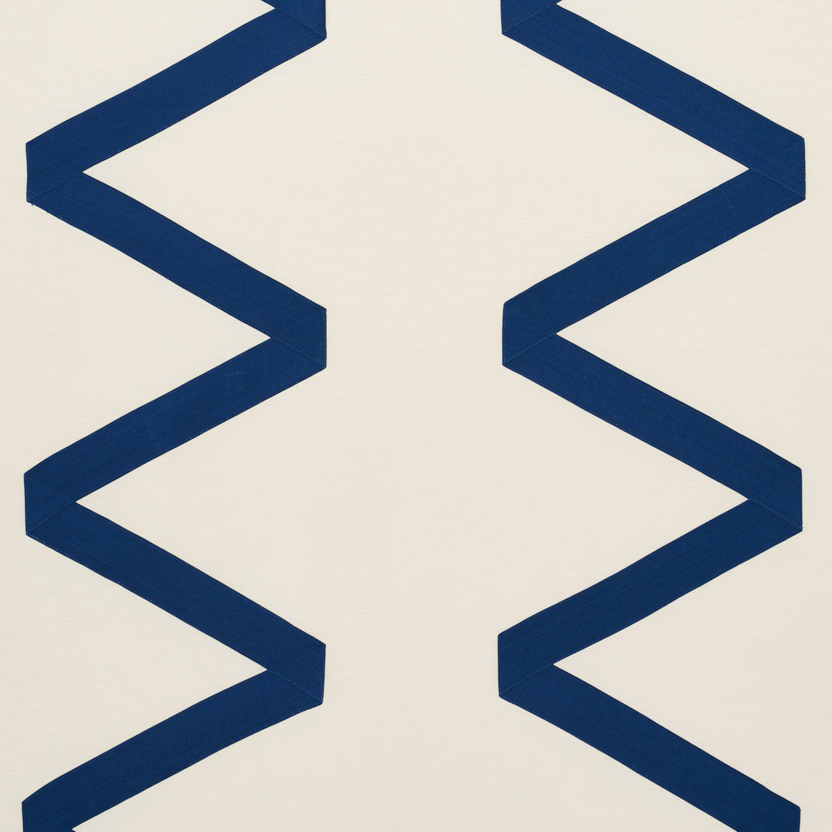 Use:A gorgeous silk-linen fabric embellished with a surprising zigzag grosgrain ribbon, Legere in cobalt on ivory is an elegant yet delightfully unfussy fabric.