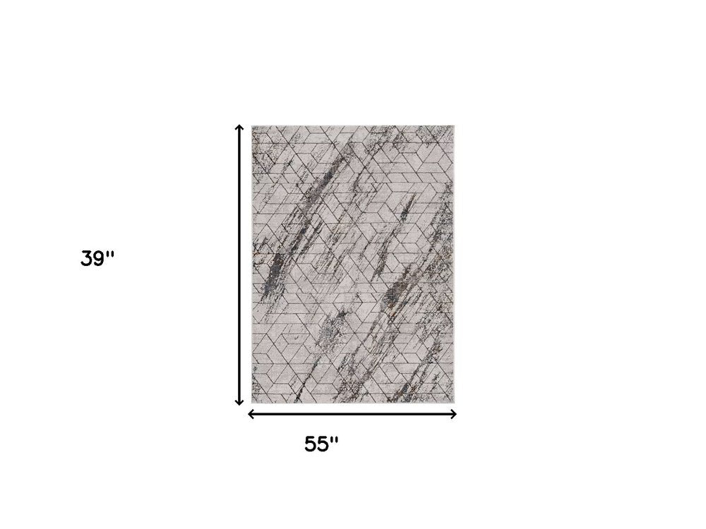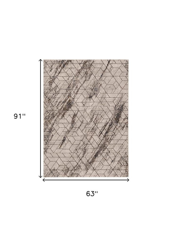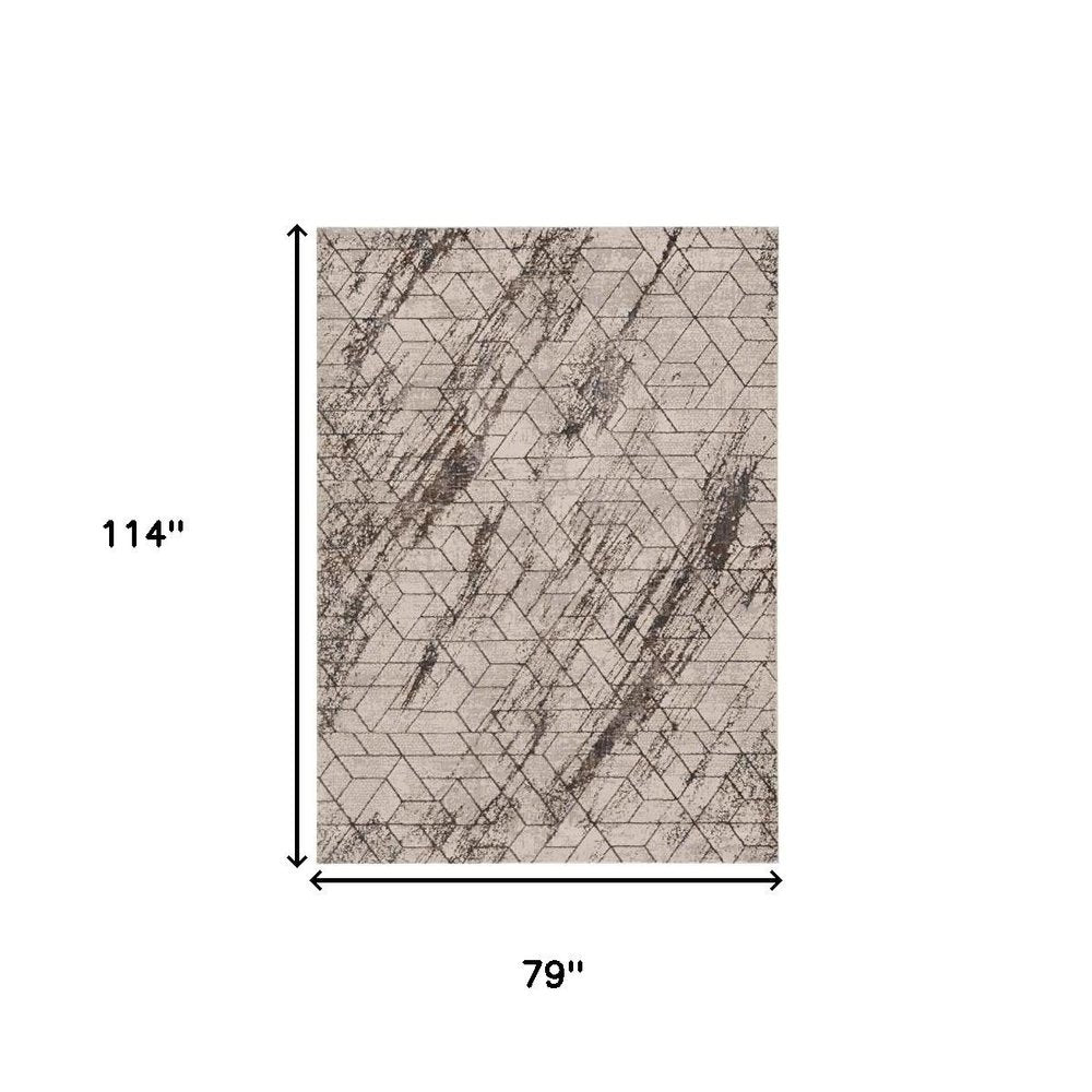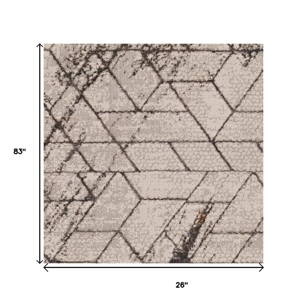 7' Ivory Machine Woven Abstract Geometric Indoor Runner Rug