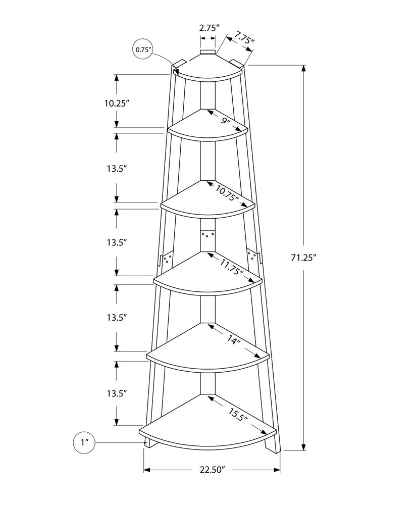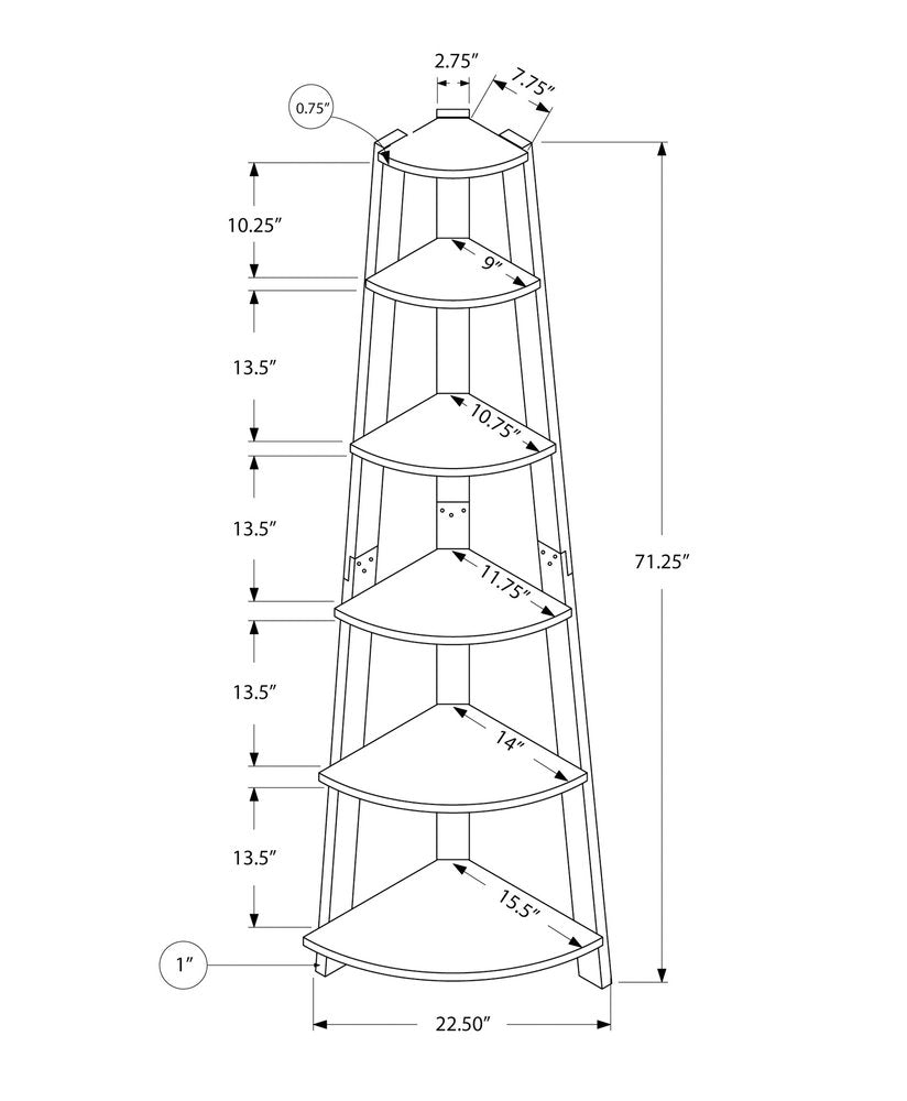 71" Gray Wood Five Tier Corner Bookcase