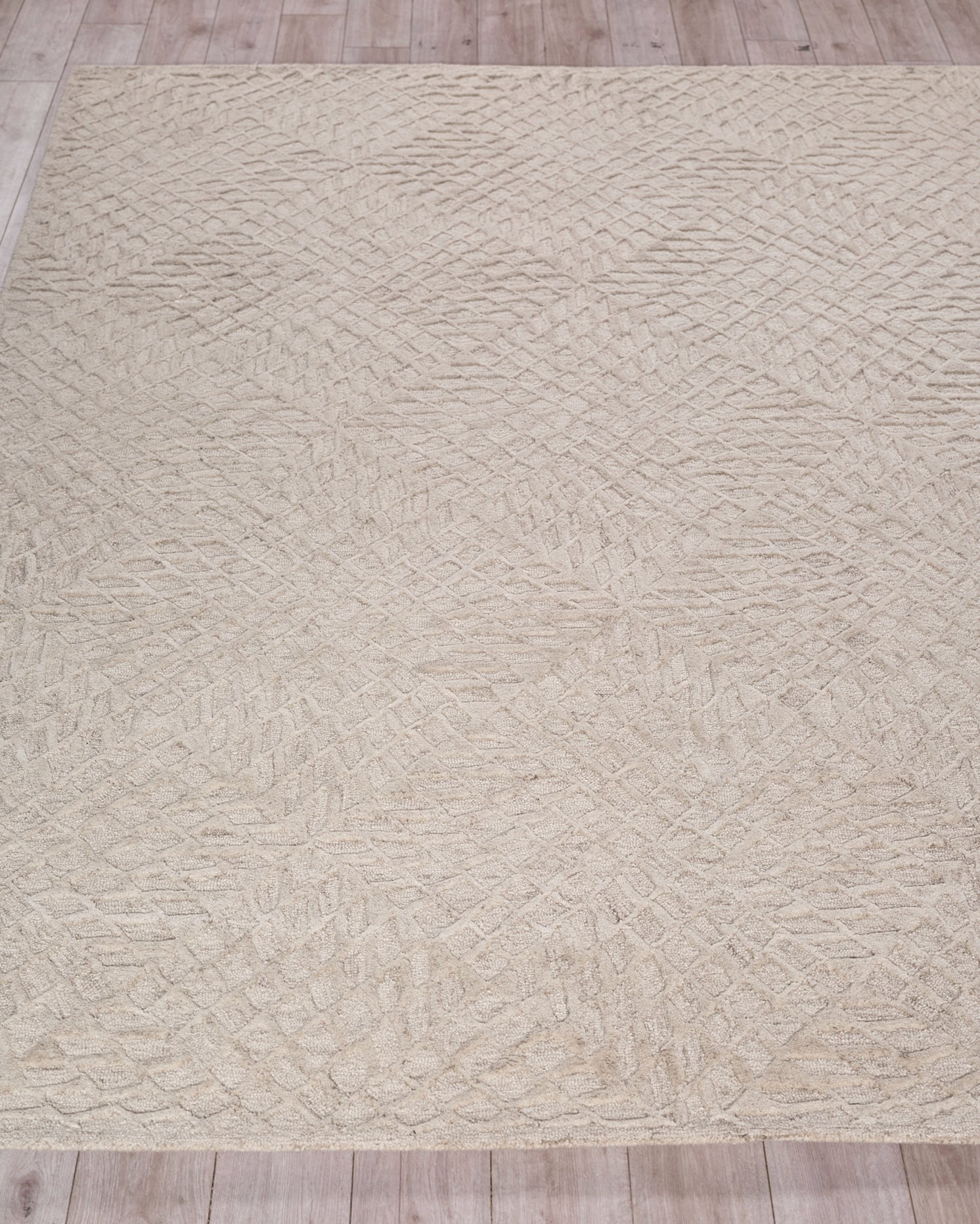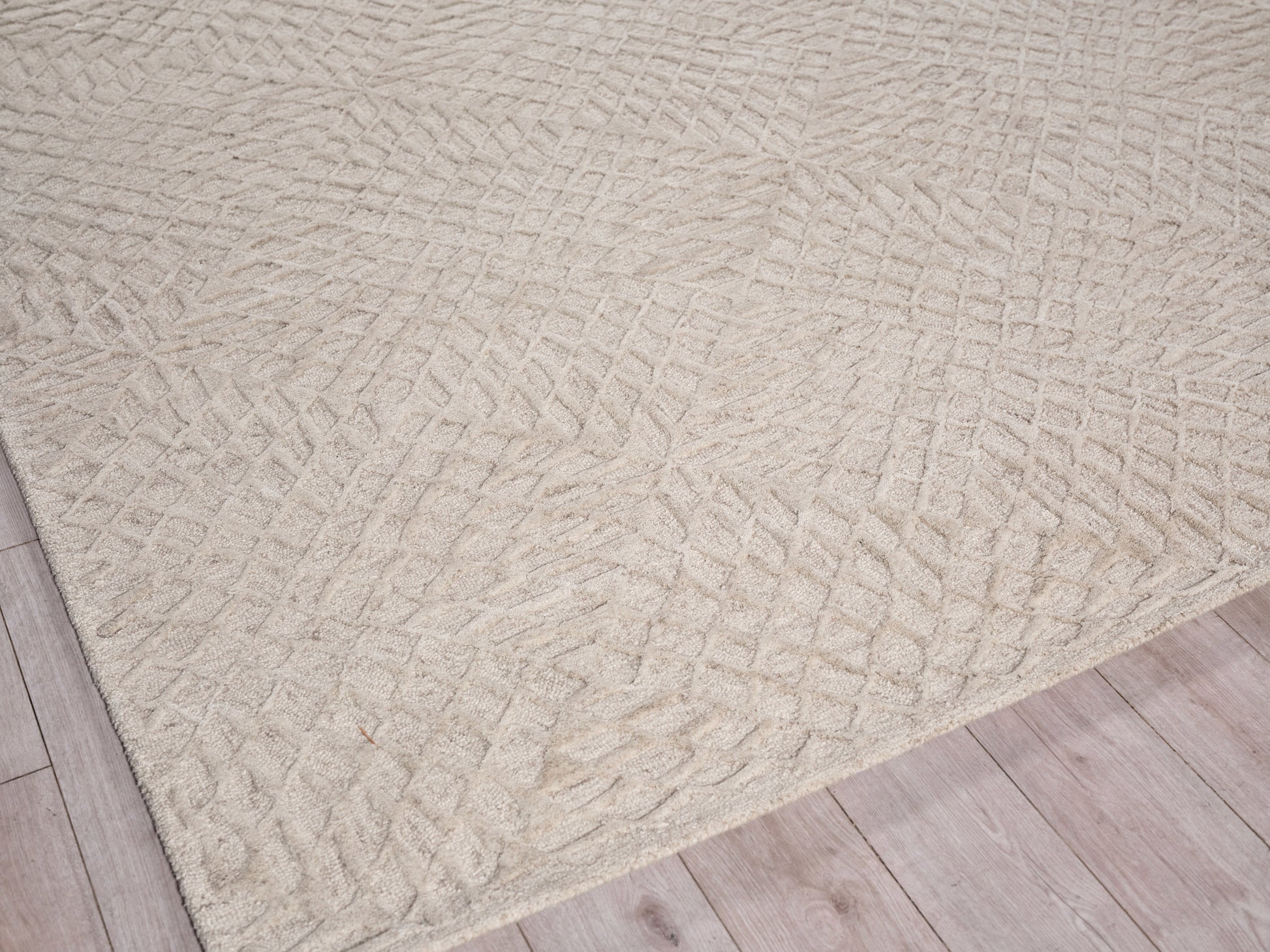Use:Textured, combination of tight loop and raised cut pile create random blocks of abstract geometric shapes. Soft neutral tones are sure to add subtle character with its depth of pattern and shadows. Our hand tufted Sandro Collection will surely be the foundation in any room.