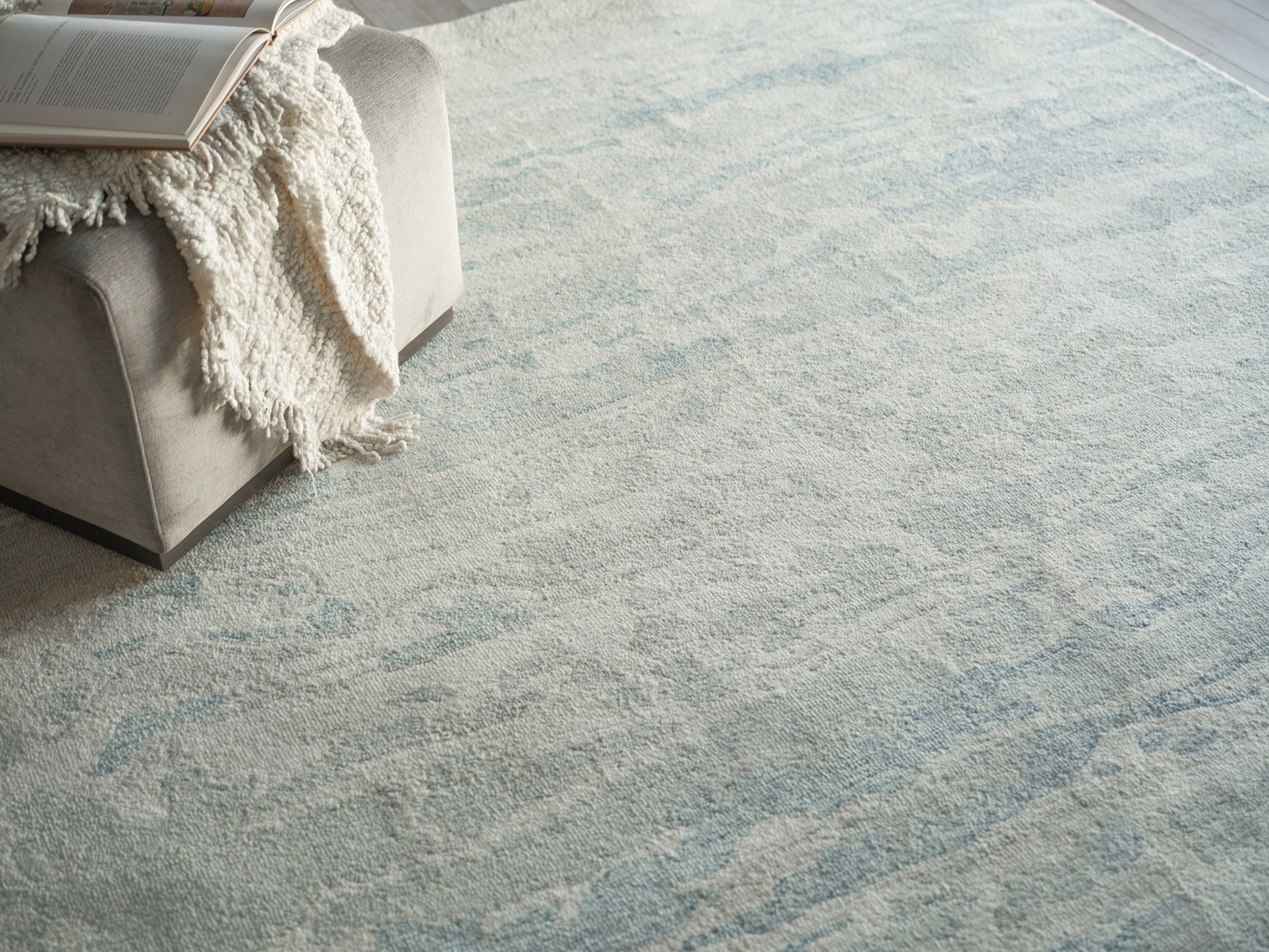 Use:Hand Tufted of 100% wool this dense construction features overlapping design, creating the look of a marble-inspired design. The bands of color vary in thickness and intensity, adding a realistic touch to rug. Its soft edge, abstract design in muted washes of colors makes it a stunning addition to any interior space.