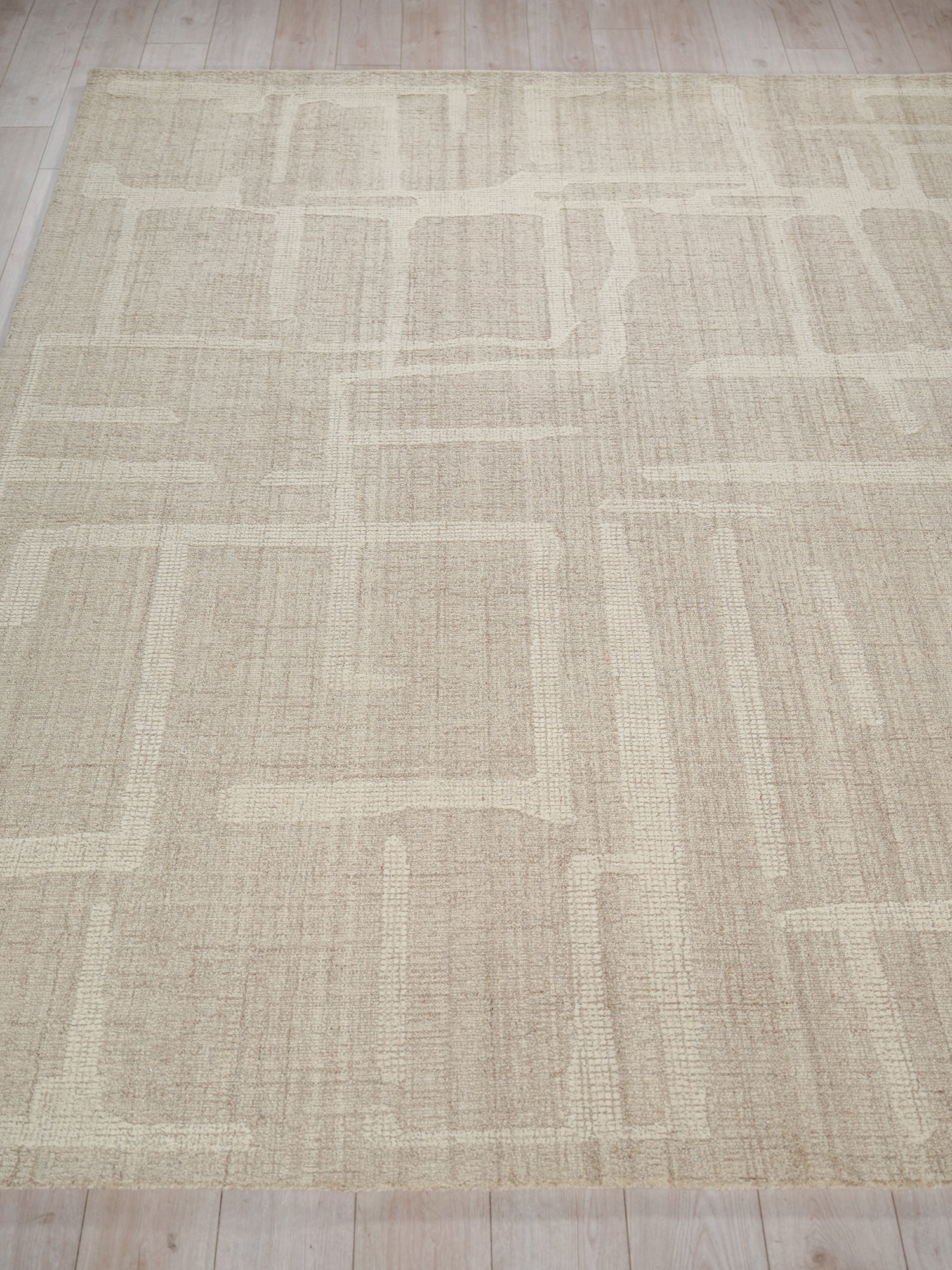 Use:Made of 100% New Zealand wool this subtle tweed loop pile background. Featuring a contrasting raised random cut pile graphic design. A modern eclectic look, a great choice for active rooms. Wool as the primary material brings warmth and durability and a luxurious feel to the rug.