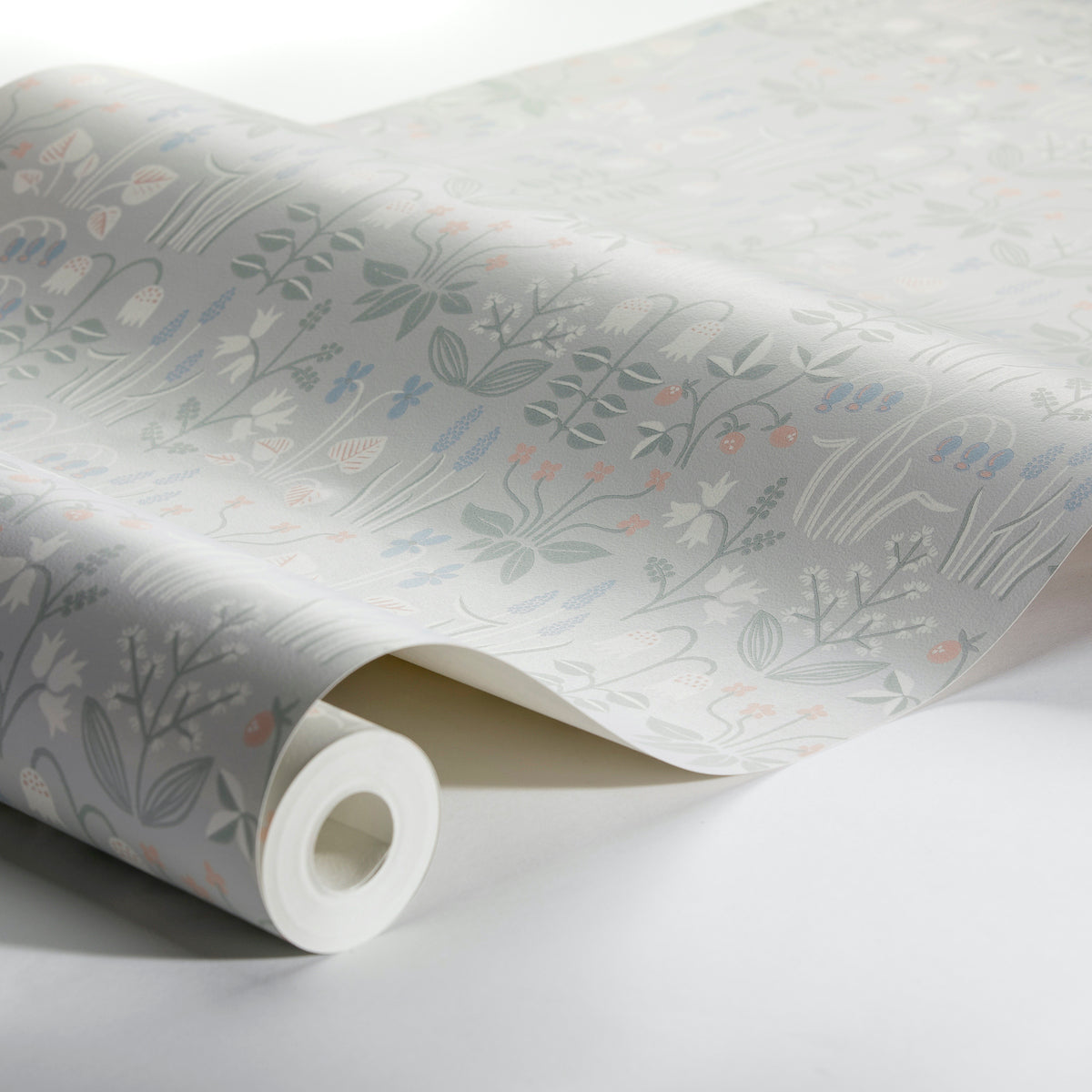 Use:Inspired by Swedish folklore, Strawberry Field in dove is a whimsical depiction of delicate violets and delicious strawberries growing gloriously in the wild countryside. Scandinavian design great Bor?stapeter is behind this fun wallpaper print that adds vintage sweetness to every space. This product is FSC Certified. Available in North America exclusively through Schumacher.